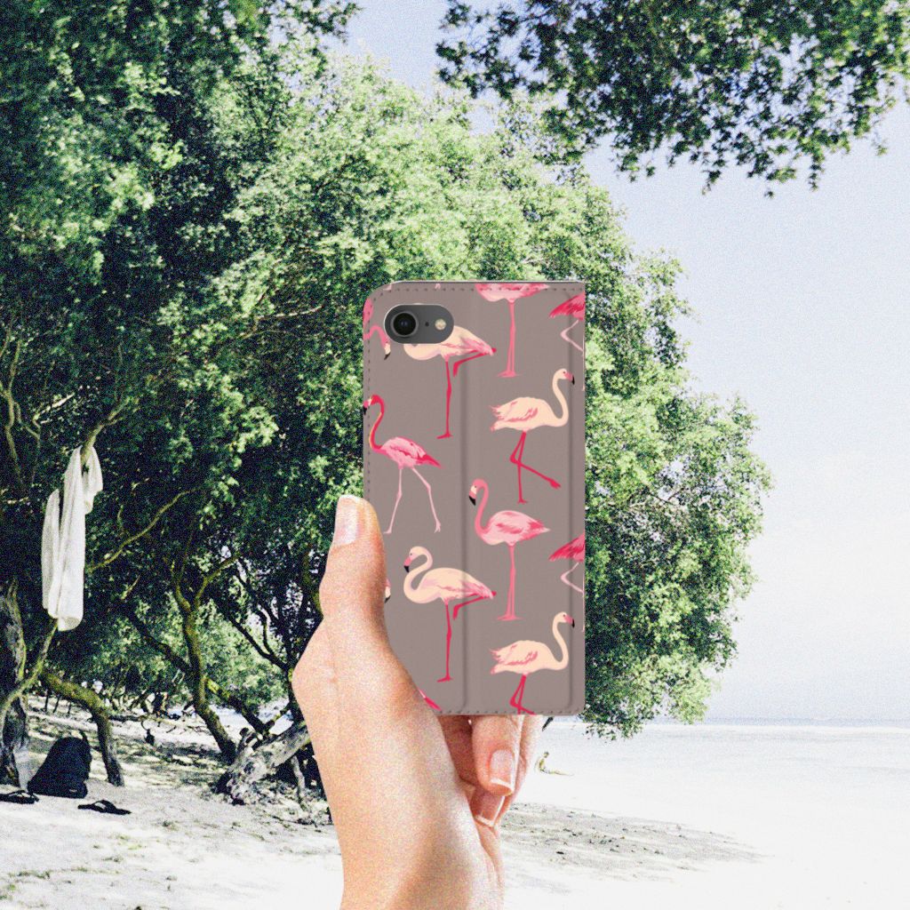 Een iPhone 7 | 8 | SE (2020) | SE (2022) Hoesje maken met rode flamingo’s is in vele opzichten bijzonder. De rode flamingo op het hoesje komt oorspronkelijk uit het Caraïbische gebied. Stel dat je in deze regio vakantie viert, dan val je zonder meer op met dit hoesje met flamingo’s. Deze stand case biedt bescherming voor alle zijden van je telefoon. Jouw smartphone ligt goed opgeborgen in de TPU houder aan de binnenzijde en in dit gedeelte van het hoesje met flamingo’s zit de magnetische sluiting. De lichtroze flamingo, ook present op deze case, wordt tegenwoordig als aparte soort gezien naast de rode flamingo. De stand case met flamingo’s heeft vakjes voor pasjes en is op maat gemaakt.