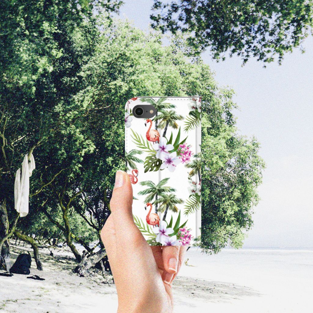Een iPhone 7 | 8 | SE (2020) | SE (2022) Hoesje maken met Flamingo Palms is in vele opzichten bijzonder. De rode flamingo op het hoesje kent zijn oorsprong in het Caraïbische gebied. Stel dat je in deze regio vakantie aan het vieren bent, dan val je zonder meer op met dit hoesje met flamingo’s en palmbomen. Dit hoesje biedt bescherming voor alle zijden van je telefoon. Jouw apparaat ligt goed opgeborgen in de TPU houder aan de binnenzijde en de buitenkant van het hoesje met flamingo’s en palmbomen heeft een magnetische sluiting. Ook de palmbomen op deze stand case geven jou natuurlijk een ultiem vakantiegevoel. Het stand hoesje met flamingo’s en palmbomen heeft een vakje voor pasjes en een standaard en is op maat gemaakt.