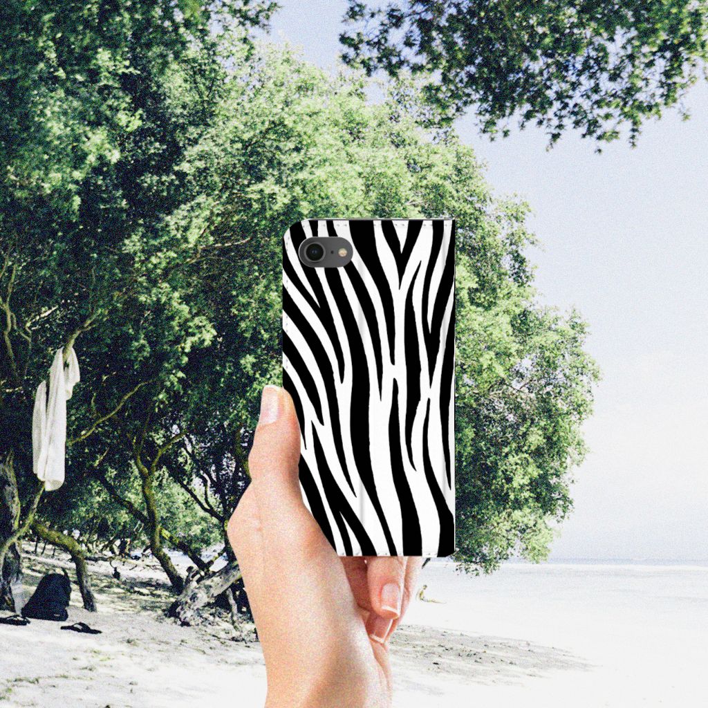 Deze iPhone 7 | 8 | SE (2020) | SE (2022) Hoesje maken met zwart en witte zebra strepen kan exclusief in het bezit van jou komen. Zeker als je er zelf nog unieke teksten en/of beelden aan toevoegt van jezelf. Je hoesje krijgt dan een eigen identiteit, net zoals de witte en zwarte strepen uniek zijn bij iedere Zebra. Deze zijn te vergelijken met de vingerafdrukken bij de mens. De strepen en patronen zijn nooit identiek aan die van een andere zebra. Ben jij toe aan een unieke stand case? Pak dan dit design met zebra strepen als basis. Het stand hoesje is van PU-leer (buitenzijde) en TPU (binnenzijde) en beschikt over een houder voor pasjes en briefgeld. Verder is dit hoesje met zebra print voorzien van magneten aan de binnenzijde. Een zebra gebruikt de strepen ook om zich te camoufleren in de omgeving om zo uit het zicht te blijven van de roofdieren. Jij zorgt voor de perfecte bescherming van je smartphone met dit design hoesje in zebra kleuren.
