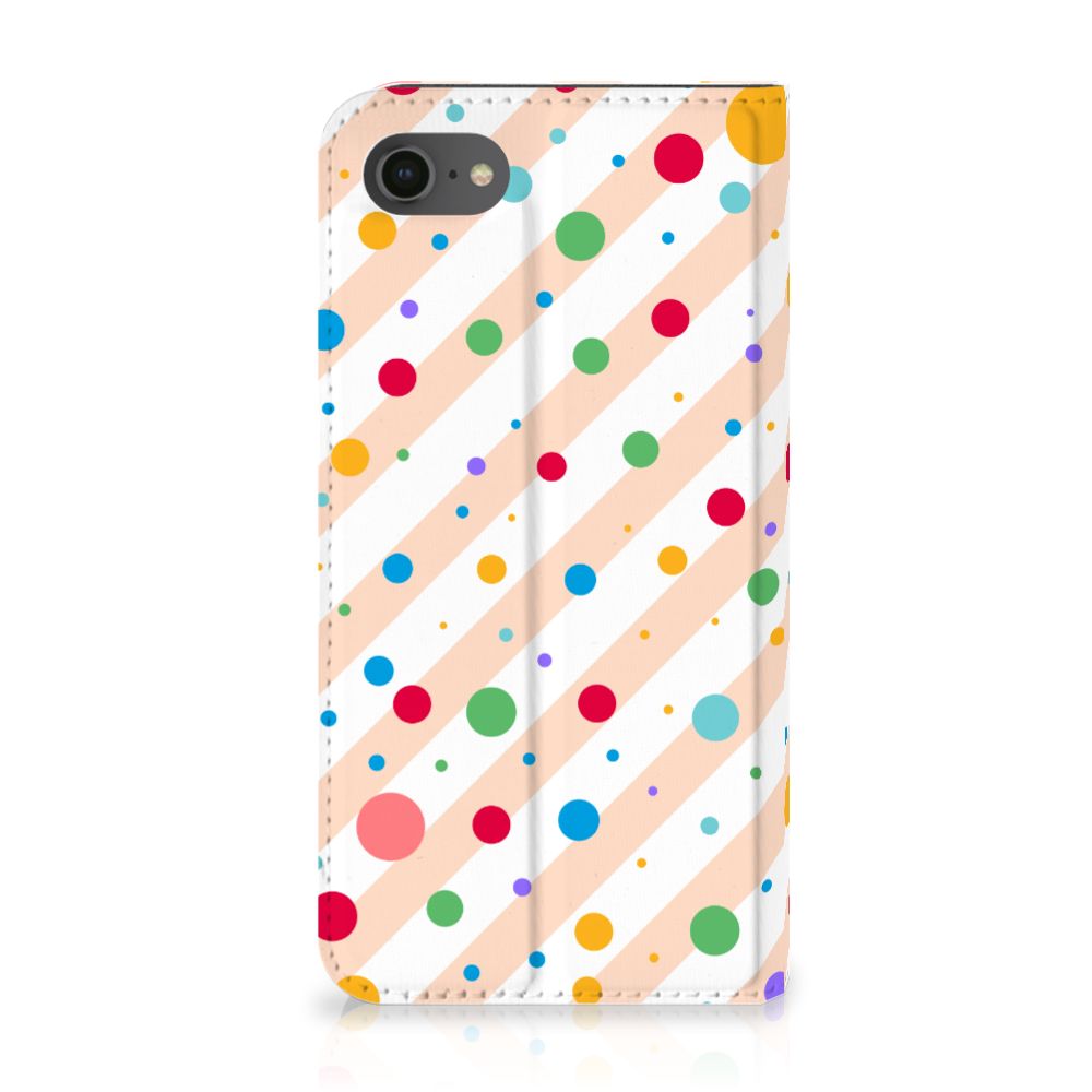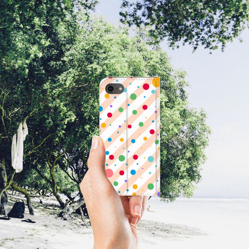 Een iPhone 7 | 8 | SE (2020) | SE (2022) Hoesje met Magneet met verschillende kleuren stippen is een schitterende bescherming van jouw smartphone. De stand case met het design Dots in alle kleuren van de regenboog komt voor jou als geroepen. Maak je geen gebruik van dit zeer mooie hoesje, dan kan het met jouw smartphone een beetje beroerd aflopen. Dit mooie stand hoesje met verschillende kleuren stippen zorgt voor een volledige bescherming van je smartphone en wordt aan alle zijden bedrukt. Dankzij de speciale standaard kun je rustig achteroverleunend filmpjes bekijken terwijl je je handen vrij hebt. Verder is de houder aan de binnenzijde van TPU. Jouw telefoon is dus zeer goed opgeborgen en kan geen kant op. Met een hoesje met stippen in verschillende kleuren op alle zijden blijft jouw telefoon volledig in tact. Heb je liever een stand case met stippen in andere opvallende kleuren? Ontwerp dan zelf case met je eigen foto’s en teksten!