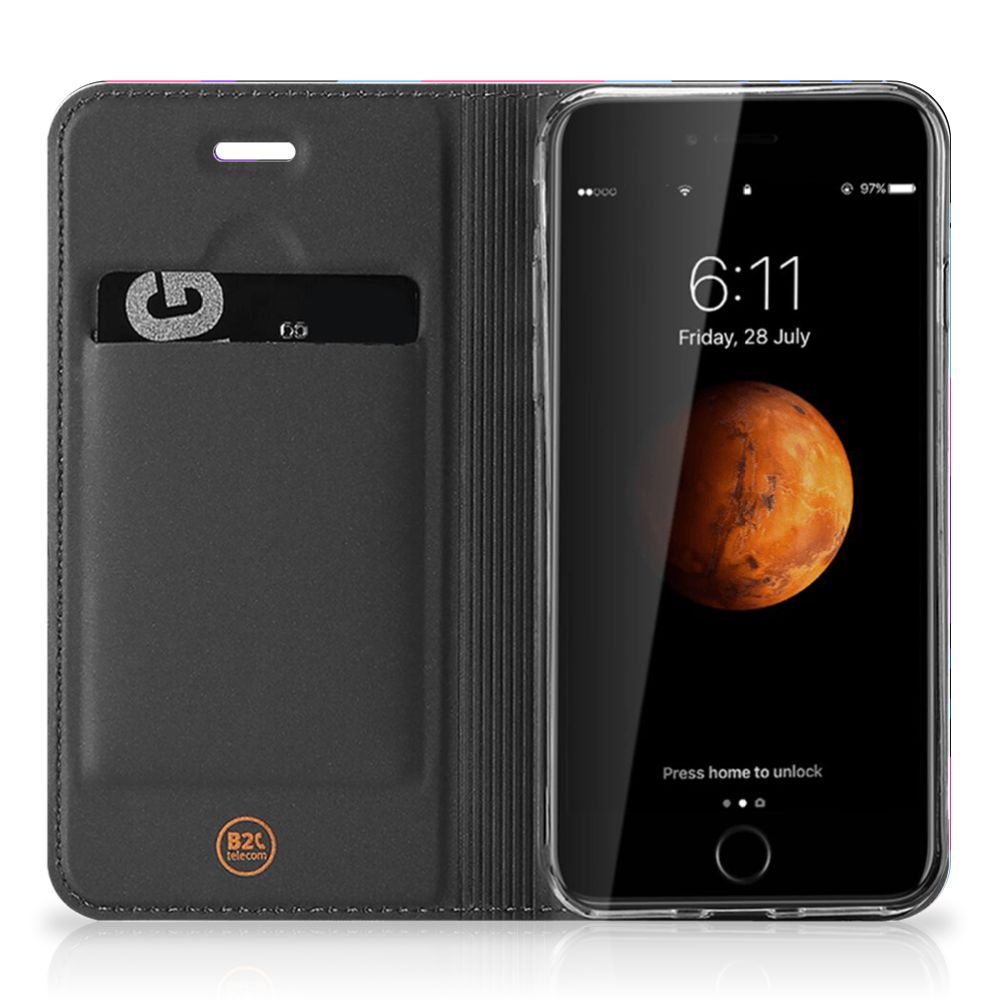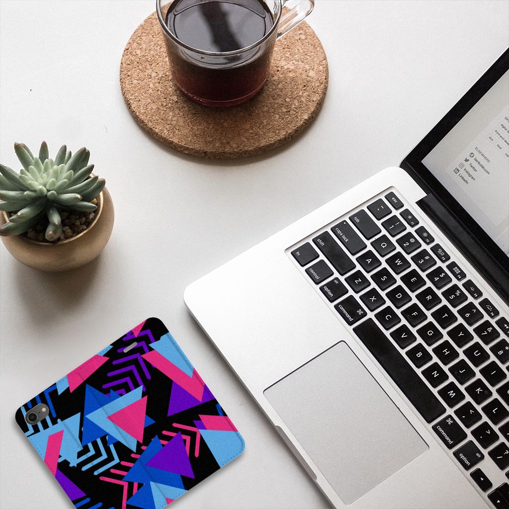 Dit fraaie hoesje met het design Funky Triangle is alles behalve eenvoudig en sober. Dat komt goed uit, want je hebt natuurlijk ook geen doorsnee telefoon gekocht. Mocht je dat wel hebben gedaan, dan wordt hij meteen speciaal als je een iPhone 7 | 8 | SE (2020) | SE (2022) Stand Case koopt voor een spotprijsje. Een ding is zeker: opvallen ga je beslist met dit hoesje met paarse, roze en blauwe driehoeken. Jij zult in je element zijn met dit design hoesje met paarse, roze en blauwe driehoeken, omdat het er schitterend uitziet en jouw telefoon perfect beschermt. Het smartphonehoesje beschermt jouw telefoon aan alle zijden en beschikt over 1 opbergvakje en een speciale standaard. Het hoesje wordt afgesloten met een magneet aan de binnenzijde. De houder aan de binnenzijde is van TPU. Alle zijden van de stand case worden bedrukt. De paarse, roze en blauwe driehoeken maken de case helemaal af.