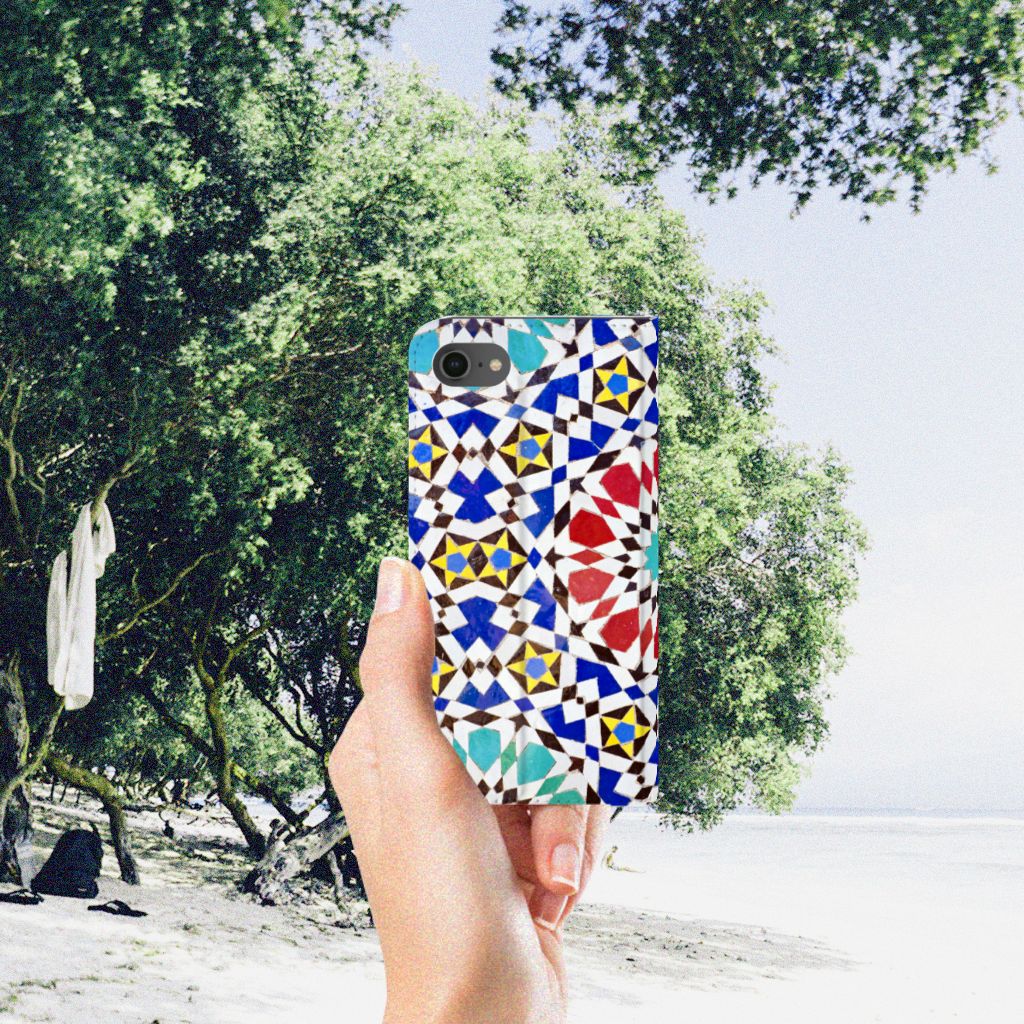 Aan design hoesjes met kunstvormen geen gebrek in onze uitgebreide collectie. Wat dacht je van dit design hoesje met Mozaïek . Dit is een kunstvorm waarbij een grote afbeelding wordt gemaakt uit een groot aantal kleine gekleurde steentjes (tesserae), die in een vloer of wand worden gemetseld. Deze gekleurde steentjes zie je terug op deze stand case met design van mozaïek. Een stand case is een van de veiligste cases die er bestaan. Een iPhone 7 | 8 | SE (2020) | SE (2022) Standcase met print zorgt voor een volledige bescherming van je smartphone en wordt aan alle zijden bedrukt met mozaïek. Verder is de houder aan de binnenzijde van TPU. De Grieken en Romeinen beheersten de kunst al. Op diverse plaatsen in Europa zijn mozaïeken teruggevonden die tot op de dag van vandaag goed bewaard zijn gebleven. Met een hoesje met mozaïek blijft jouw telefoon in tact. Je pasje en kun je in het vakje aan de binnenzijde stoppen. De case heeft ook een standaard.