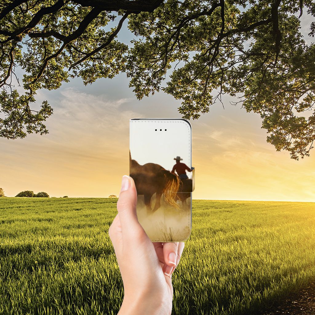 Voor de paardenliefhebbers onder ons hebben we onze collectie uitgebreid met dit design hoesje met print van een cowboy met paarden. Vroeger hield de mens vooral werkpaarden, inmiddels hebben we vriendschap gesloten met het paard. Vandaar dat het ook een favoriet dier is op onze smartphonehoesjes, zoals deze boekhoesjes. Dit Telefoonhoesje met Pasjes met paarden is niet alleen super mooi en chique, het sluit ook nog perfect dankzij het lipje aan de buitenzijde. Verder heeft de case een TPU houder aan de binnenzijde en houders voor pasjes en briefgeld. Zie je liever je eigen paard terug op een hoesje voor jouw iPhone 7 | 8 | SE (2020) | SE (2022)? Dat kan! Door zelf een uniek hoesje te ontwerpen, met eigen foto’s en teksten. Het boekhoesje met paarden wordt aan alle zijden bedrukt.