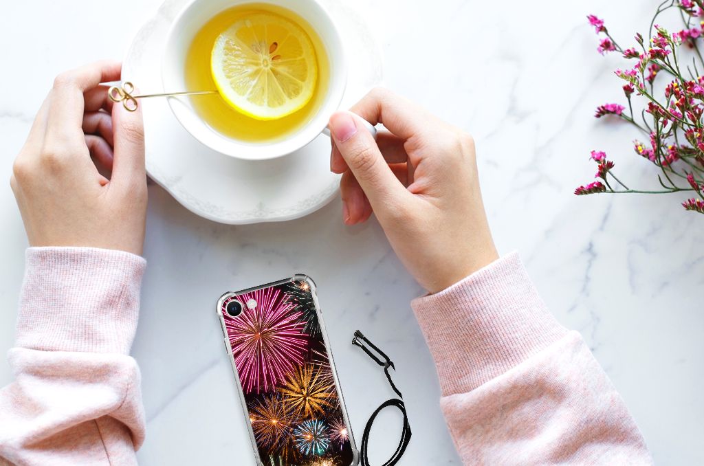 Ben je op zoek naar een uniek telefoonhoesje voor je iPhone SE 2022 | 2020 | 8 | 7? Dan ben je bij B2C Telecom aan het juiste adres! Speciaal voor jou hebben we dit prachtige Vuurwerk design in onze collectie hoesjes opgenomen. Het design wordt bedrukt op een Anti Shock Bumper Case en is gemaakt van flexibel rubber. Het hoesje is perfect voor de actieve smartphonegebruiker door de opstaande randen/hoeken. Denk aan mensen die veel sporten, reizen of wandelen en net iets meer zekerheid willen als het op hun geliefde telefoon aankomt. Het design wordt alleen aan de bovenkant van het hoesje bedrukt en de randen blijven transparant. Aan de zijkanten zijn uitsparingen gemaakt waardoor je met gemak alle knoppen en poorten kunt bedienen. Wij adviseren om dit hoesje in combinatie met een screenprotector te gebruiken voor een langere levensduur van je telefoon. Wil je dit hoesje nog iets extra's geven? Voeg dan gratis je naam of een quote toe! Is dit design hoesje toch niet helemaal wat je zocht? Ontwerp dan zelf een hoesje in ons ontwerpprogramma.