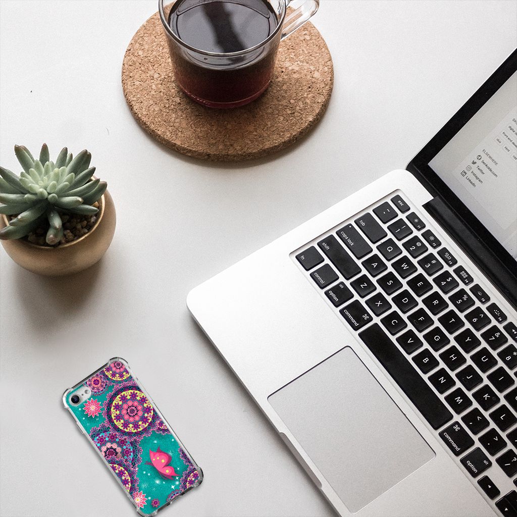 Ben je op zoek naar een uniek telefoonhoesje voor je iPhone SE 2022/2020 | iPhone 8/7? Dan ben je bij B2C Telecom aan het juiste adres! Speciaal voor jou hebben we dit prachtige Cirkels en Vlinders design in onze collectie hoesjes opgenomen. Het design wordt bedrukt op een Back Cover en is gemaakt van flexibel rubber. Het hoesje is perfect voor de actieve smartphonegebruiker door de opstaande randen/hoeken. Denk aan mensen die veel sporten, reizen of wandelen en net iets meer zekerheid willen als het op hun geliefde telefoon aankomt. Het design wordt alleen aan de bovenkant van het hoesje bedrukt en de randen blijven transparant. Aan de zijkanten zijn uitsparingen gemaakt waardoor je met gemak alle knoppen en poorten kunt bedienen. Wij adviseren om dit hoesje in combinatie met een screenprotector te gebruiken voor een langere levensduur van je telefoon. Wil je dit hoesje nog iets extra's geven? Voeg dan gratis je naam of een quote toe! Is dit design hoesje toch niet helemaal wat je zocht? Ontwerp dan zelf een hoesje in ons ontwerpprogramma.