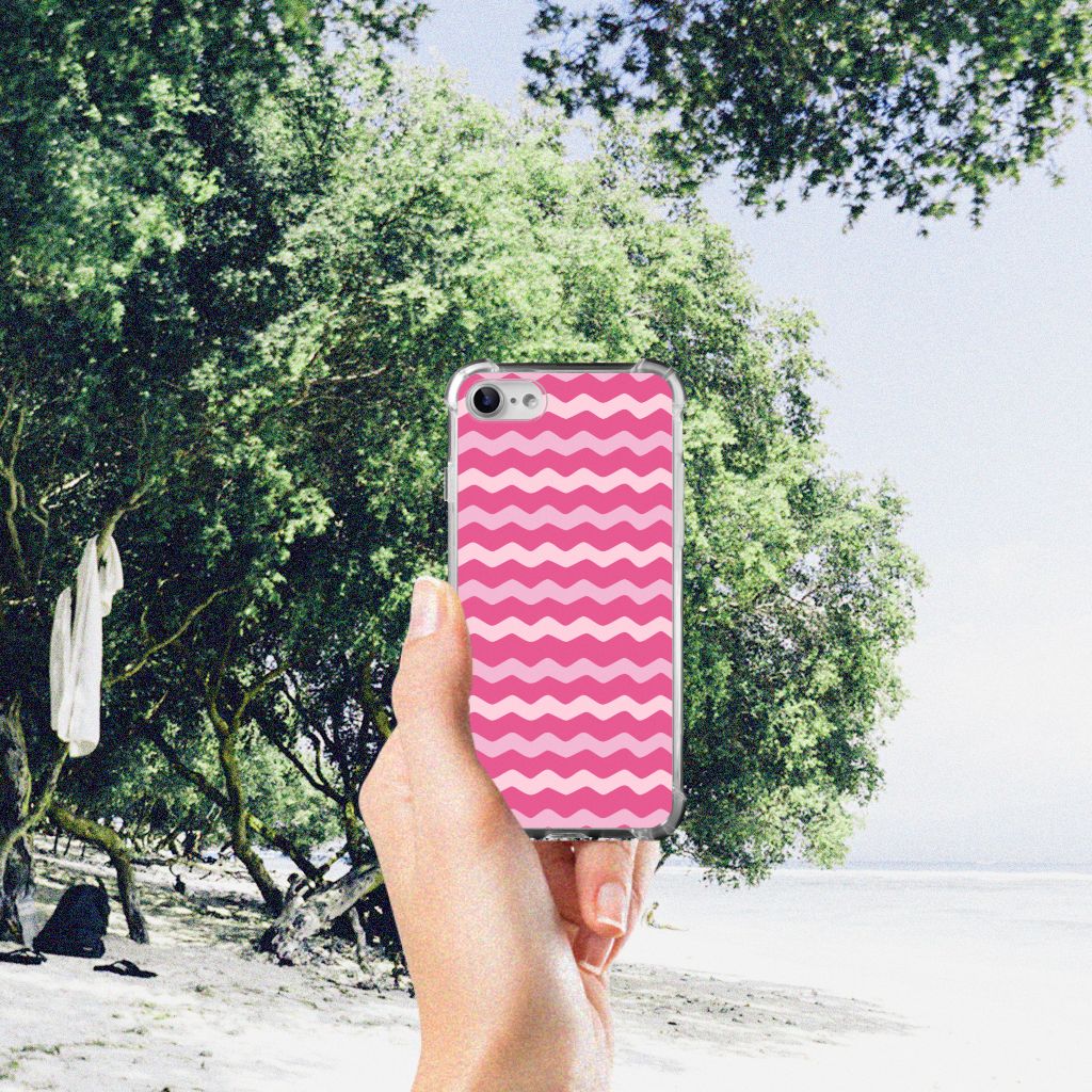 Ben je op zoek naar een uniek telefoonhoesje voor je iPhone SE 2022/2020 | iPhone 8/7? Dan ben je bij B2C Telecom aan het juiste adres! Speciaal voor jou hebben we dit prachtige Waves Pink design in onze collectie hoesjes opgenomen. Het design wordt bedrukt op een Doorzichtige Silicone Hoesje en is gemaakt van flexibel rubber. Het hoesje is perfect voor de actieve smartphonegebruiker door de opstaande randen/hoeken. Denk aan mensen die veel sporten, reizen of wandelen en net iets meer zekerheid willen als het op hun geliefde telefoon aankomt. Het design wordt alleen aan de bovenkant van het hoesje bedrukt en de randen blijven transparant. Aan de zijkanten zijn uitsparingen gemaakt waardoor je met gemak alle knoppen en poorten kunt bedienen. Wij adviseren om dit hoesje in combinatie met een screenprotector te gebruiken voor een langere levensduur van je telefoon. Wil je dit hoesje nog iets extra's geven? Voeg dan gratis je naam of een quote toe! Is dit design hoesje toch niet helemaal wat je zocht? Ontwerp dan zelf een hoesje in ons ontwerpprogramma.