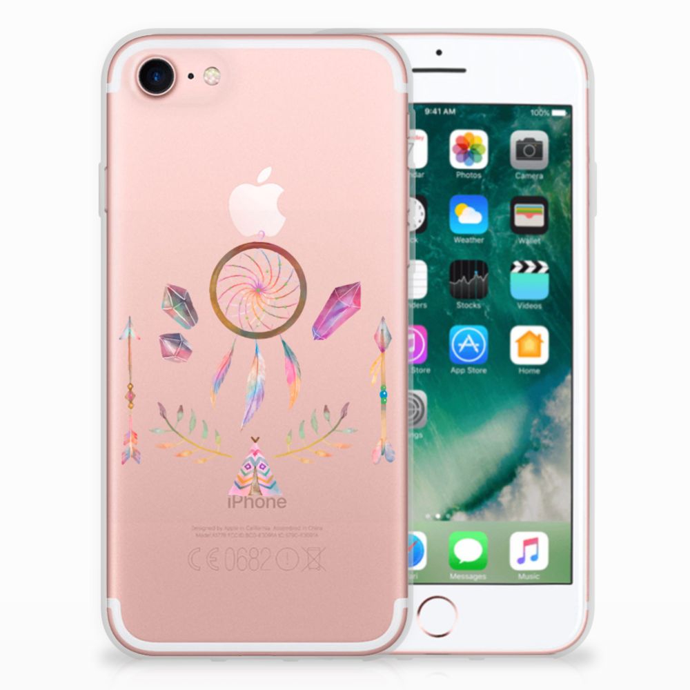 Een dromenvanger werd lang geleden al door een indianenvolk in Noord-Amerika gebruikt om nare dromen te weren. Nu nog hangen mensen over de hele wereld dromenvangers boven hun bed. Maar ook op een telefoonhoesje staat zo’n boho dreamcatcher heel mooi. Dit mooie design dat bestaat uit een tipi, pijlen en dromenvanger heeft veel verschillende prachtige kleuren. Maar omdat het ontwerp minimalistisch en klein is, is het design toch subtiel te noemen. Dit ontwerp staat op een Telefoonhoesje met Naam voor je iPhone SE 2022 | SE 2020 | 8 | 7. TPU is flexibel en heel erg sterk. Zo is je telefoon aan de achterkant en de randen heel goed beschermd. De case is aan de bovenkant bedrukt, de randen blijven transparant. Het TPU-hoesje is perfect te combineren met een screenprotector, zo zijn je telefoon en je beeldscherm altijd goed beschermd.