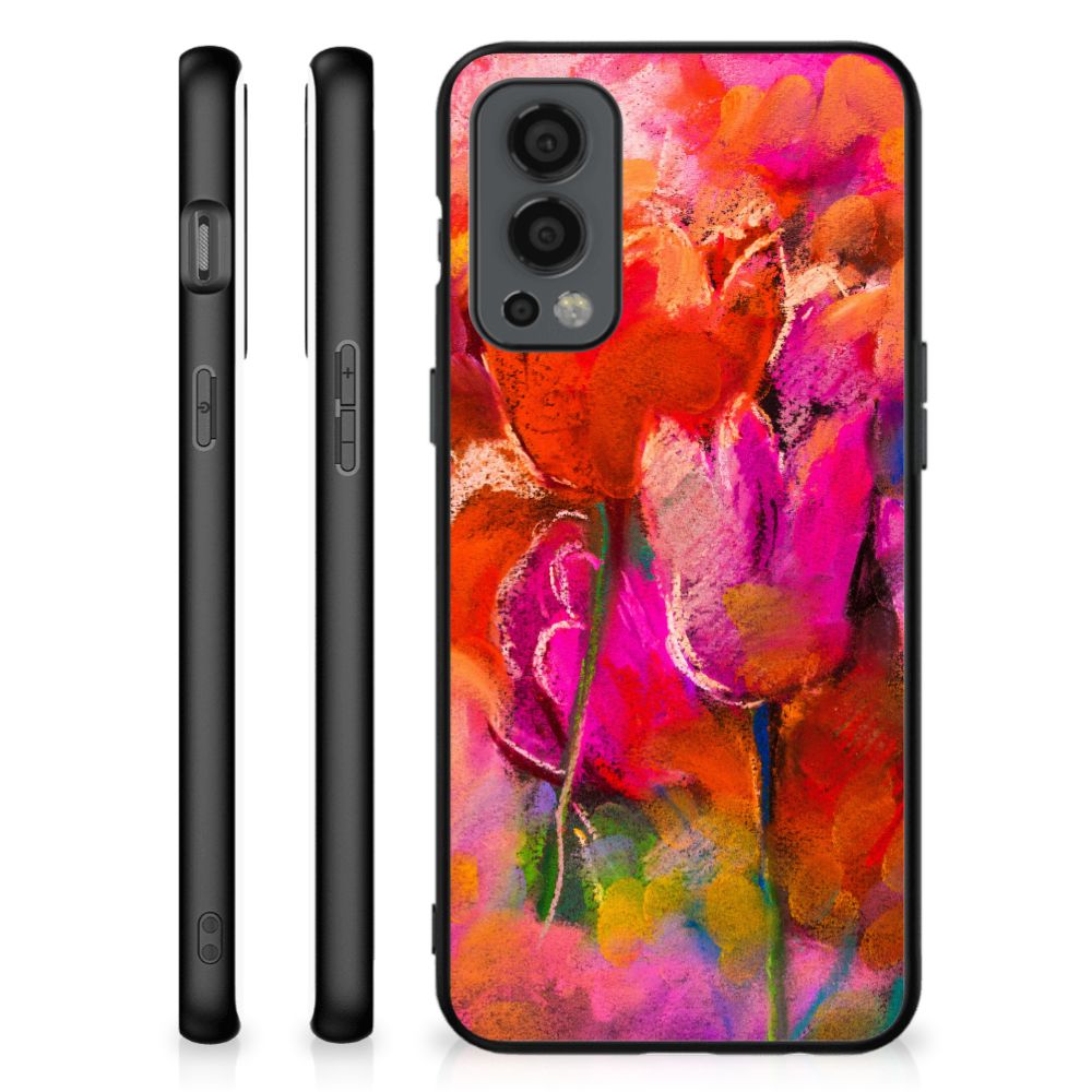 OnePlus Nord 2 5G Stand Case Zwart Roze Vormen