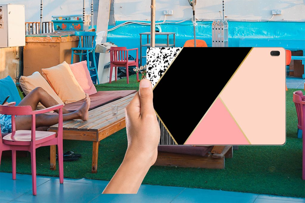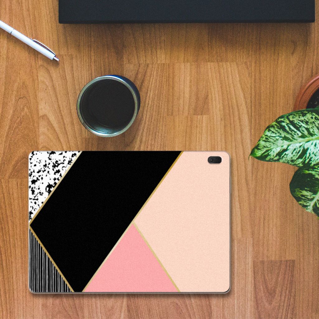 - Met dit hoesje met roze, zwarte en witte vlakken blijft jouw tablet in tact.