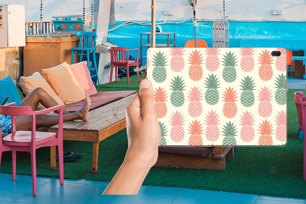 Ananas is een woord uit het Tupi, de taal van de Tupi-indianen, en betekent uitmuntende vrucht. Dit fruit van zeer hoge kwaliteit staat op onze superieure boekhoesjes, stand cases, hard cases en TPU cases. Jij blijft er gezond uitzien als je zo nu en dan een hap neemt van een Ananas , jouw tablet blijft tip top in orde als je er een leuk tablethoesje omheen doet. Een ananas heeft stevig, veerkrachtig vruchtvlees. Een beetje te vergelijken met het TPU in onze hoesjes. TPU is elastisch materiaal, dat zeer buigzaam is. Vandaar dat het zeer schokbestendig is. Het ananas design staat op een staat op een tablethoesje. Deze Lenovo Tab E10 Tablet Cover wordt alleen aan de bovenkant bedrukt en is zeer flexibel. De randen van het hoesje blijven transparant.