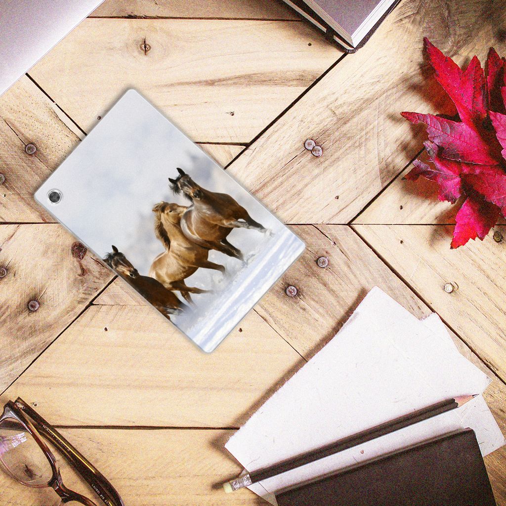 Voor de paardenliefhebbers onder ons hebben we onze collectie uitgebreid met dit design hoesje met print van paarden. Vroeger hield de mens vooral werkpaarden, inmiddels hebben we vriendschap gesloten met het paard. Vandaar dat het ook een favoriet dier is op onze tablethoesjes, zoals deze tabletcase. Een Back Case voor de Lenovo Tab M10 Plus met Paarden is niet alleen super mooi en chique, maar ook nog eens zeer flexibel. Verder is de case schokabsorberend en heeft het opstaande randen. Zie je liever je eigen paard terug op een hoesje. Dat kan! Door zelf een uniek hoesje te ontwerpen, met eigen foto’s en teksten. Dit hoesje wordt aan de bovenzijde bedrukt, de zijkanten blijven transparant.