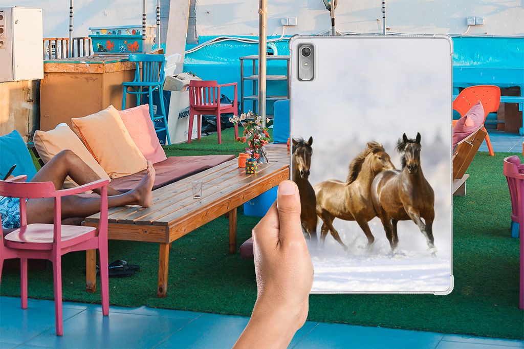 Voor de paardenliefhebbers onder ons hebben we onze collectie uitgebreid met dit design hoesje met print van paarden. Vroeger hield de mens vooral werkpaarden, inmiddels hebben we vriendschap gesloten met het paard. Vandaar dat het ook een favoriet dier is op onze tablethoesjes, zoals deze tabletcase. Een Back Case voor de Lenovo Tab P11 Gen 2 met Paarden is niet alleen super mooi en chique, maar ook nog eens zeer flexibel. Verder is de case schokabsorberend en heeft het opstaande randen. Zie je liever je eigen paard terug op een hoesje. Dat kan! Door zelf een uniek hoesje te ontwerpen, met eigen foto’s en teksten. Dit hoesje wordt aan de bovenzijde bedrukt, de zijkanten blijven transparant.