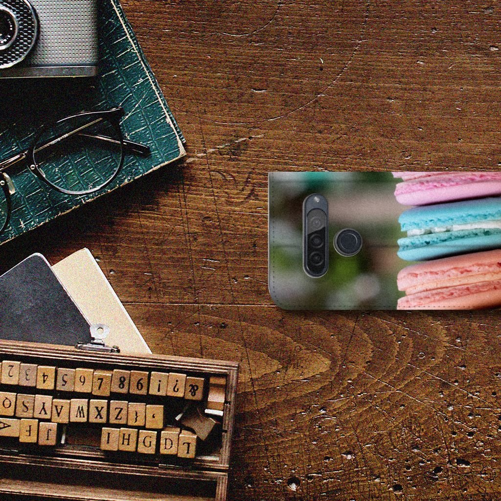 Dit stand hoesje met macarons is een zeer opvallende bescherming voor jouw smartphone. Macarons zijn Franse koekjes: kleine, rond en luchtig. Ze zijn aan elkaar geplakt met een zachte vulling. Ze worden in veel verschillende smaken gemaakt, herkenbaar aan de verschillende kleuren zoals chocolade (donkerbruin), mokka (middenbruin), kersen (rood), pistache (groen), aardbei (roze), framboos (karmijn), citroen (geel) en kokos (roomwit). Deze kleuren kun je natuurlijk ook zien op dit fraaie design hoesje met macarons. Heb je altijd al een LG G8s Thinq Flip Style Cover willen hebben met macarons? Grijp dan nu je kans. Deze case heeft zeer veel goede eigenschappen, zoals 1 opbergvakje en een magnetische sluiting aan de binnenkant. Dit design hoesje met macarons wordt aan alle zijden bedrukt. De houder aan de binnenkant van het hoesje is van TPU. De case heeft ook een handige standaard.
