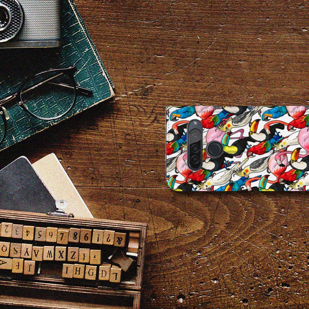 Dit exotische hoesje vol prachtige vogels is een genot voor het oog. Dankzij de felgekleurde toekans, papegaaien, flamingo’s en kaketoes op dit design word je meteen vrolijk als je naar dit hoesje kijkt. Je waant je meteen in de tropen met dit bonte gezelschap tegen een witte achtergrond. Het ontwerp staat op een Hoesje maken voor de LG G8s Thinq. Dit populaire smartphonehoesje met het beton-design heeft één vakje voor een pasje of briefgeld en is aan alle zijden bedrukt. Met de standcase zet je je telefoon gemakkelijk neer, zodat je je handen vrij hebt als je bijvoorbeeld een video wilt kijken. De binnenkant van de standcase is van grijs PU-leer. Dat is fijn, omdat je daardoor niet snel vlekken ziet op je hoesje.