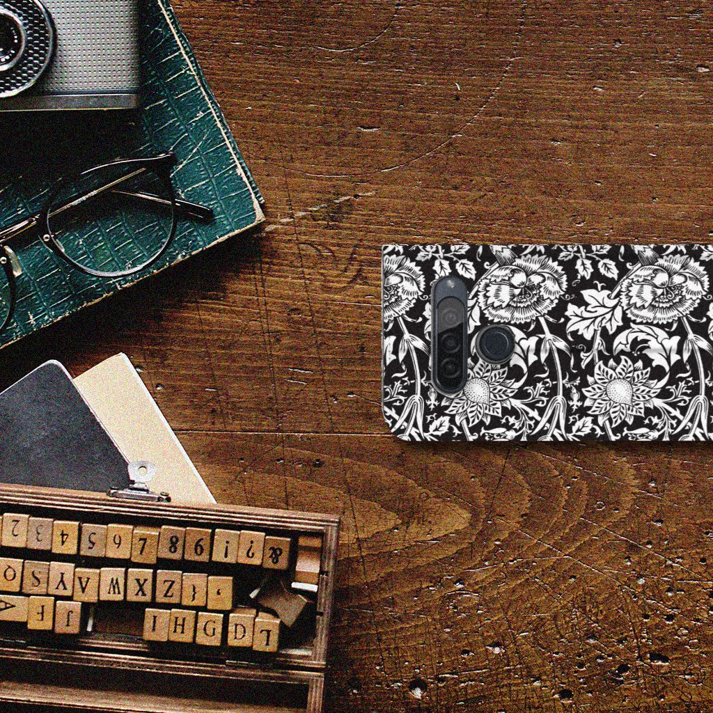 Bloemen raken nooit uit de mode! Een mooie bloemenprint op je telefoonhoesje dus ook niet. Dit ontwerp met mooie, enigszins abstracte bloemen is perfect voor de liefhebber van bloemen die geen felgekleurd hoesje wil. Vanwege de zwarte achtergrond en de witte bloemen heb je toch een opvallend en uniek design in handen. Dit black flowers-ontwerp staat op een Smart Cover voor je LG G8s Thinq. Dit populaire smartphonehoesje met het beton-design heeft één vakje voor een pasje of briefgeld en is aan alle zijden bedrukt. Met de standcase zet je je telefoon gemakkelijk neer, zodat je je handen vrij hebt als je bijvoorbeeld een video wilt kijken. De binnenkant van de standcase is van grijs PU-leer. Dat is fijn, omdat je daardoor niet snel vlekken ziet op je hoesje.