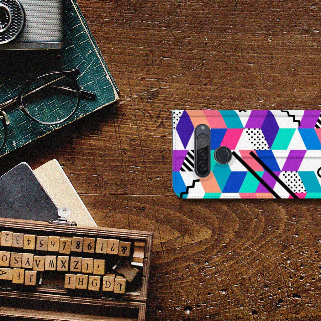 Stand Case LG G8s Thinq Design Blokken Kleurrijk