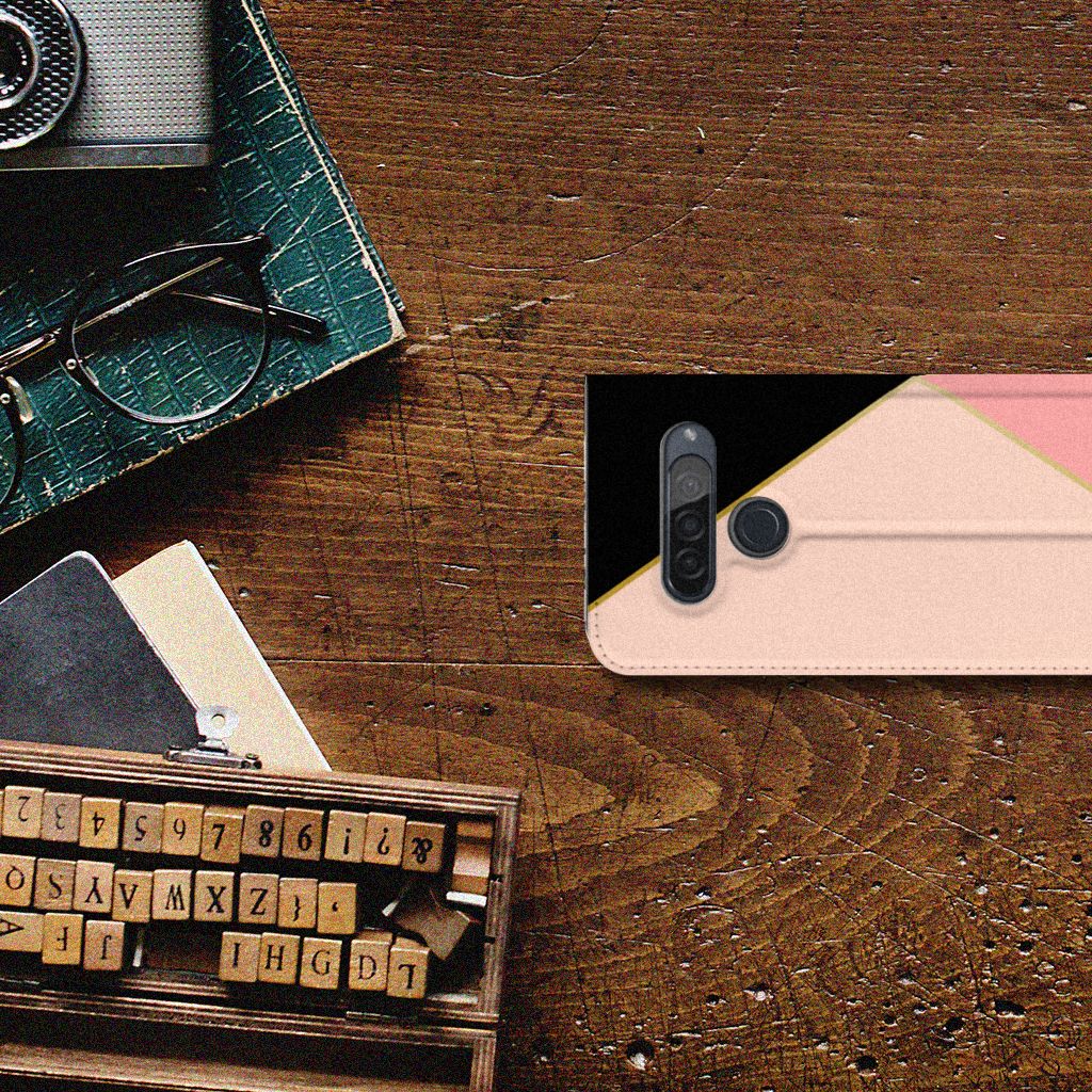 LG G8s Thinq Print Stand Case Zwart Roze Vormen