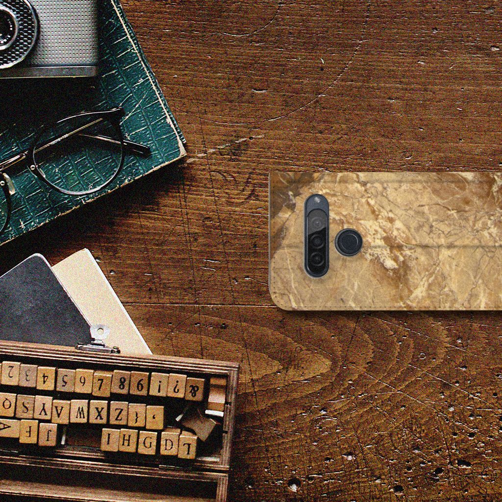 Dit design hoesje met Marmer in lichtbruine kleur is voor de artistiekelingen onder ons. De Grieken en Romeinen wisten het marmer al te waarderen door het in de bouw toe te passen. Naast het witte marmer zijn de diverse soorten marmer in een gevarieerde kleurensamenstelling te krijgen. We hebben verschillende mooie kleuren op design hoesjes gezet, zoals in dit geval het lichtbruine marmer. Dit is een LG G8s Thinq Standcase met marmer in lichtbruine kleur. Het marmer wordt bedrukt op alle zijden van een stand case, die beschikt over 1 vakje voor een pasje en een magnetische sluiting aan de binnenzijde. Verder heeft de hoes een houder van TPU. Door de rijkdom aan kleuren en varianties in afwerking kunnen ontwerpers met marmer schitterende architectonische projecten realiseren. Wij hebben hetzelfde gedaan en onze ontwerper veel vrijheid geboden. Het resultaat zie je terug in deze stand case met lichtbruin marmer, dat de ideale bescherming voor jouw smartphone is.