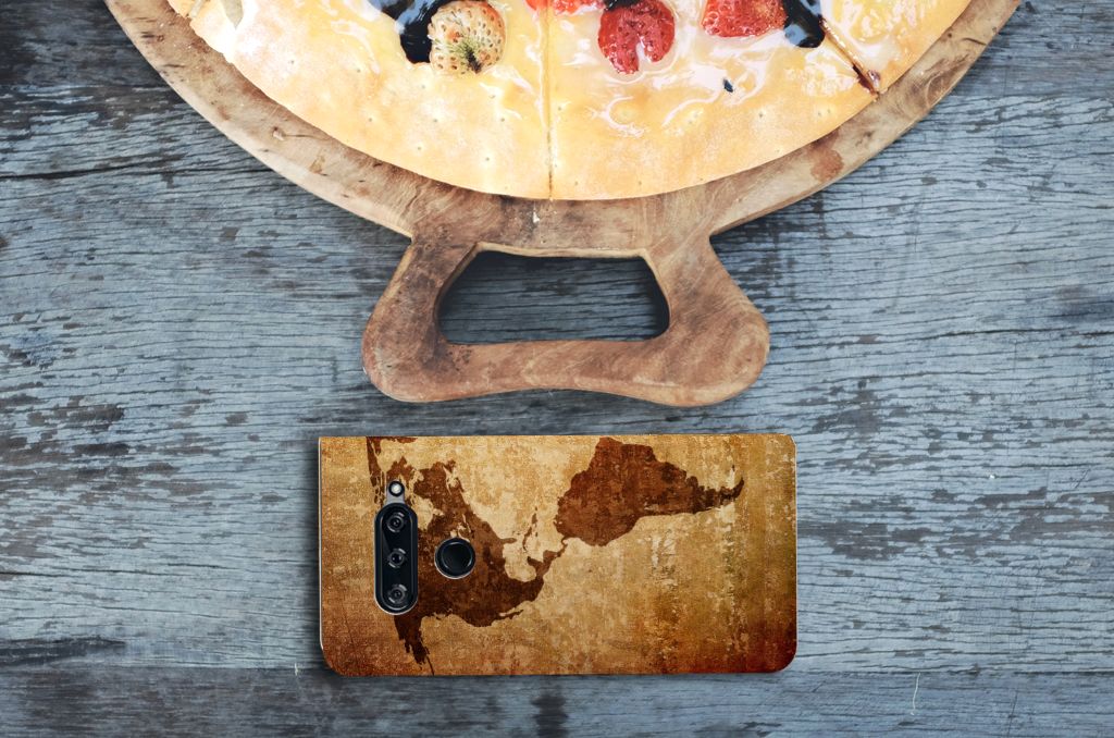 Als je een hoesje koopt met een wereldkaart, kun jij op veilige wijze met je smartphone rond de wereld reizen. Ga je zonder een boekhoesje met wereldkaart het buitenland verkennen, dan loop je veel te groot risico dat je stukken krijgt aan je smartphone. Met als gevolg dat je de belangrijke gebeurtenissen op je reis wellicht niet meer vast kunt leggen om door te sturen aan je vrienden. In het slechtste geval wordt jouw toestel zonder een smartphone hoesje met wereldkaart onbruikbaar. Wij kunnen de wereldkaart bedrukken op een stand case. Een LG V40 Thinq Book Cover beschermt jouw telefoon aan alle kanten en beschikt over een 1 opbergvakje en een speciale standaard. Het hoesje wordt afgesloten met een magneet aan de binnenzijde. De houder aan de binnenzijde is van TPU. Dit stand hoesje met wereldkaart is voor een zeer laag bedrag te bestellen.