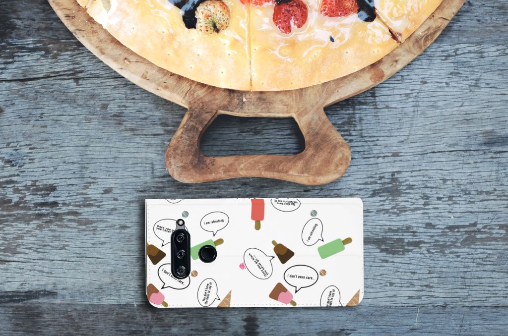 Van deze vrolijke LG V40 Thinq Flip Style Cover met daarop verschillende soorten ijsjes met tekstwolkjes krijg je sowieso een vrij en zomers gevoel. De zomer komt naar je toe met deze print van ijsjes met tekstwolkjes. Ben je op het strand, dan ontbreekt een lekker ijsje natuurlijk niet. Net zoals je je smartphone bij de hand hebt, met daaromheen een design hoesje met bijzondere ijsjes en tekstwolkjes. Jouw telefoon kan dan de bescherming in de vorm van een stand case met ijsjes zeer goed gebruiken. Alle zijden van dit hoesje worden bedrukt met ijsjes en dankzij de speciale standaard is het erg prettig om filmpjes te bekijken. De case wordt aan de binnenzijde met een magneet afgesloten en de houder aan de binnenzijde is van TPU. Onder alle weersomstandigheden zal deze case met 1 opbergvakje en ijsjes perfect functioneren, ook op het strand met een ijsje in je hand.