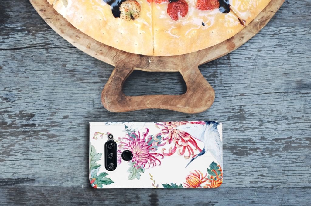LG V40 Thinq Hoesje maken Pauw met Bloemen