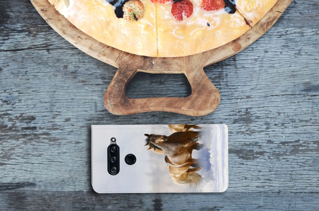 Voor de paardenliefhebbers onder ons hebben we onze collectie uitgebreid met dit design hoesje met print van paarden. Vroeger hield de mens vooral werkpaarden, inmiddels hebben we vriendschap gesloten met het paard. Vandaar dat het ook een favoriet dier is op onze smartphonehoesjes, zoals deze stand cases. Deze LG V40 Thinq Hoesje maken met Paarden is niet alleen super mooi en chique, het sluit ook nog perfect dankzij de magneet aan de binnenzijde. Verder heeft de case een TPU houder aan de binnenzijde en een houder voor een pasje. Zie je liever je eigen paard terug op een hoesje? Dat kan! Door zelf een uniek hoesje te ontwerpen, met eigen foto’s en teksten. De stand case met paarden wordt aan alle zijden bedrukt.
