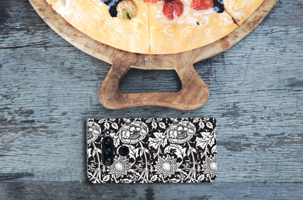 Bloemen raken nooit uit de mode! Een mooie bloemenprint op je telefoonhoesje dus ook niet. Dit ontwerp met mooie, enigszins abstracte bloemen is perfect voor de liefhebber van bloemen die geen felgekleurd hoesje wil. Vanwege de zwarte achtergrond en de witte bloemen heb je toch een opvallend en uniek design in handen. Dit black flowers-ontwerp staat op een Smart Cover voor je LG V40 Thinq. Dit populaire smartphonehoesje met het beton-design heeft één vakje voor een pasje of briefgeld en is aan alle zijden bedrukt. Met de standcase zet je je telefoon gemakkelijk neer, zodat je je handen vrij hebt als je bijvoorbeeld een video wilt kijken. De binnenkant van de standcase is van grijs PU-leer. Dat is fijn, omdat je daardoor niet snel vlekken ziet op je hoesje.