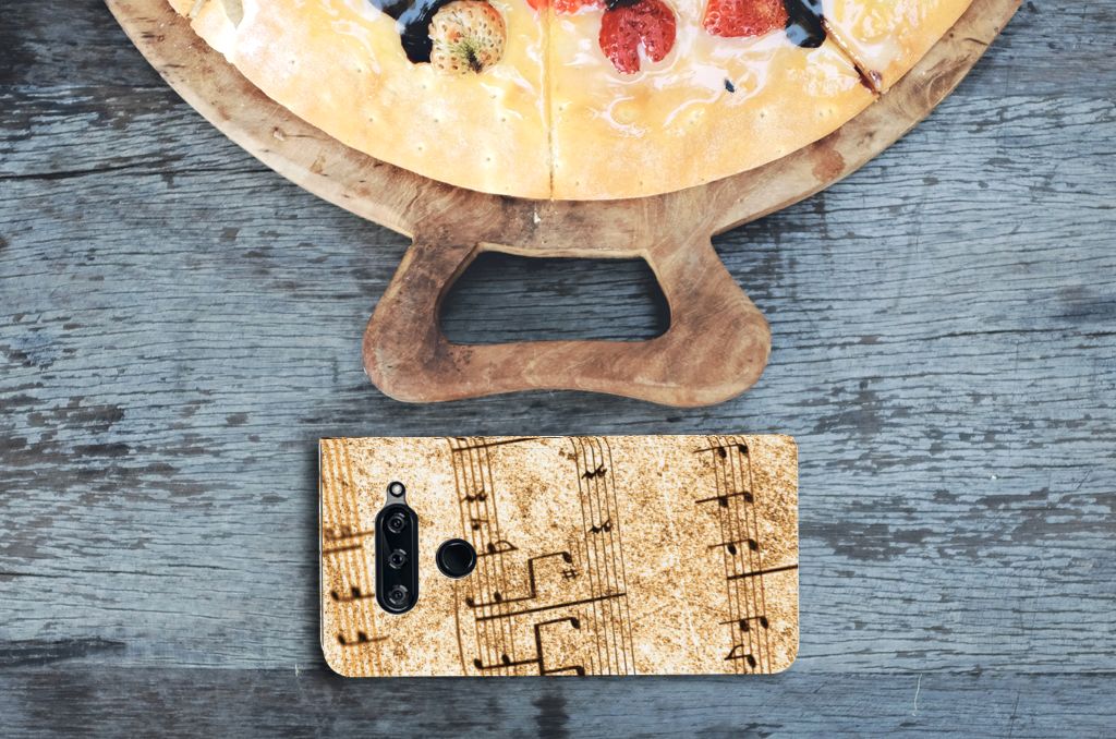 Ben je muzikant, dan is dit design hoesje met Bladmuziek wellicht echt iets voor jou. Met de intrede van nieuwe media wordt de rol van papieren bladmuziek teruggedrongen. Steeds vaker treft men 'bladmuziek' op een beeldschermapparaat, zoals een tablet-pc, e-reader of iPad aan. Gelukkig maar, want als er geen nieuwe media zouden zijn, hadden wij ook nooit onze Phone Case Designer kunnen ontwerpen. Met deze unieke ontwerpmodule kun je jouw favoriete band of artiest op je smartphone hoesje zetten, maar je kunt ook gaan voor dit prachtige design hoesje met print van bladmuziek. Het design staat op een LG V40 Thinq Stand Case. Deze case beschermt jouw telefoon aan alle kanten en beschikt over een 1 opbergvakje en een speciale standaard. Het hoesje wordt afgesloten met een magneet aan de binnenzijde. De houder aan de binnenzijde is van TPU. Alle zijden van de stand case worden bedrukt.