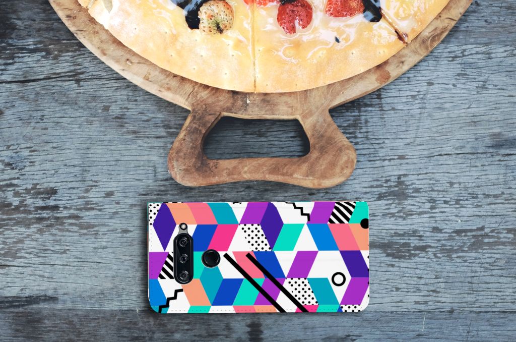 Stand Case LG V40 Thinq Design Blokken Kleurrijk