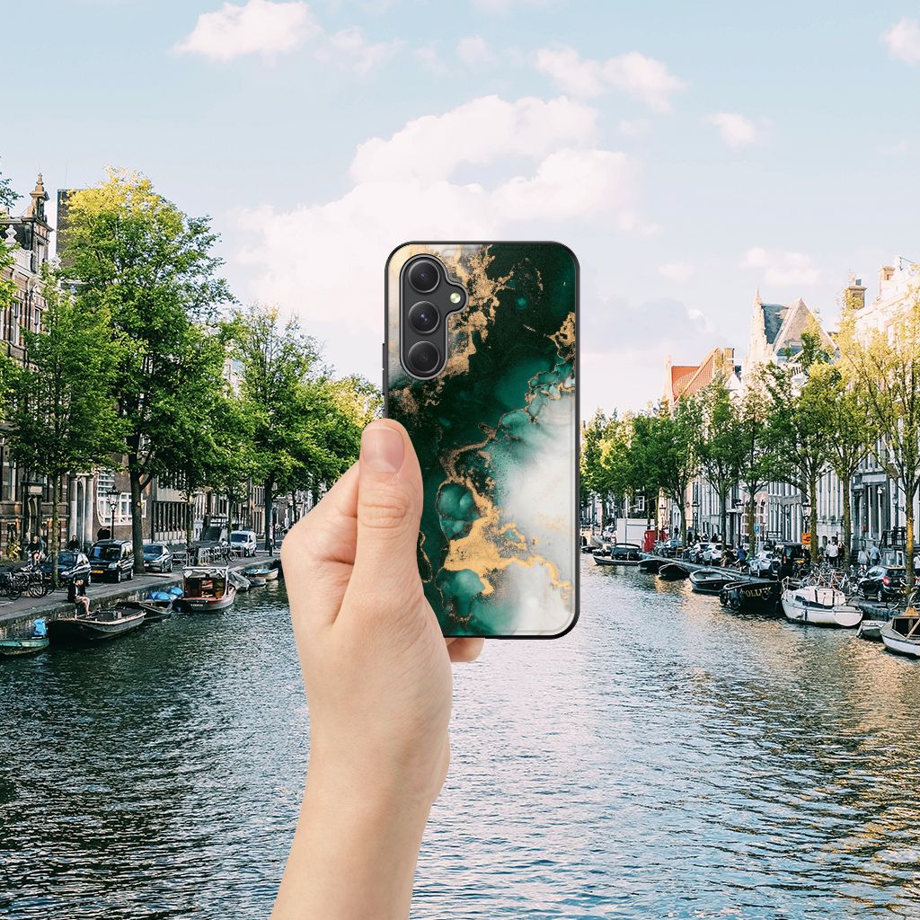 Wist je dat het design marmer zwart het meest verkochte hoesje is? Om onze collectie stenen uit te breiden hebben we het design marmer groen toegevoegd om jouw Samsung Galaxy A54 nog meer op te laten vallen. Dit marmer groene design wordt geprint op een Marmeren Print Telefoonhoesje. Het ligt prettig in de hand en is licht van gewicht. Het is een mix van hardcase en TPU. Deze combinatie samen zorgt wat ons betreft voor een perfect hoesje als je van niet te veel poespas houdt. Alleen de achterkant van je telefoon wordt beschermd. Daarom adviseren wij om dit hoesje in combinatie met een screenprotector te gebruiken. Bestel vandaag nog dit toffe smartphonehoesje met marmer design!