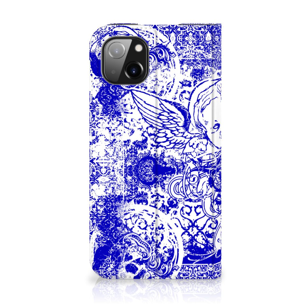 Dit ietwat duistere blauwe patroon tref je vaak aan op een bandana. Een bandana wordt om het hoofd of de hals gedragen. Een bandana is ideaal als je op de racefiets, motor of de brommer zit en jezelf wilt beschermen tegen wind, opwaaiend stof of fijn zand. Leden van motorclubs dragen dit soort bandana’s dan ook graag. Wil je jouw Apple iPhone 14 Plus optimaal beschermen tegen opwaaiend stof, zand of andere bedreigingen, dan is dit design hoesje met Angel Skull Blue design een zeer goede keus. Het design staat op een stand case. Deze Mobiel BookCase beschermt jouw telefoon aan alle kanten en beschikt over een 1 opbergvakje en een speciale standaard. Het hoesje wordt afgesloten met een magneet aan de binnenzijde. De houder aan de binnenzijde is van TPU. Alle zijden van de standcase worden bedrukt.