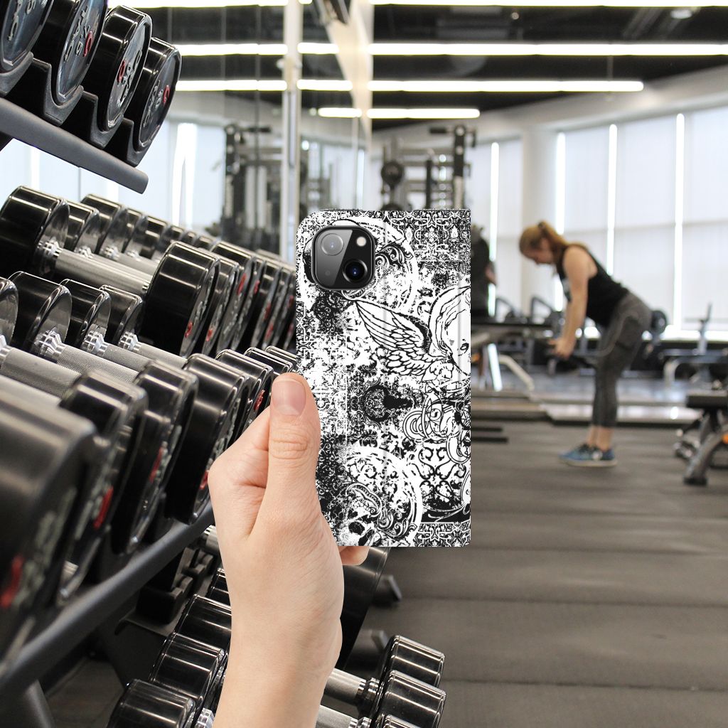 Dit mysterieuze patroon tref je vaak aan op een bandana. Een bandana is een kledingstuk dat om het hoofd of de hals wordt gedragen. Behalve als kledingstuk vindt de bandana soms toepassing als signaal. Een bandana is het eenvoudigste middel als je op de motor of de brommer zit en jezelf wilt beschermen tegen wind, opwaaiend stof of fijn zand. Leden van bekende motorclubs dragen dit kledingstuk dan ook graag, om meerdere redenen. Wil je jouw Apple iPhone 14 Plus optimaal beschermen tegen opwaaiend stof, zand of andere bedreigingen, dan is dit design hoesje met Skulls Angel een zeer goede keus. Het design staat op een stand case. Deze case beschermt jouw telefoon aan alle kanten en beschikt over een 1 opbergvakje en een speciale standaard. Het Mobiel BookCase wordt afgesloten met een magneet aan de binnenzijde. De houder aan de binnenzijde is van TPU. Alle zijden van de stand case worden bedrukt.