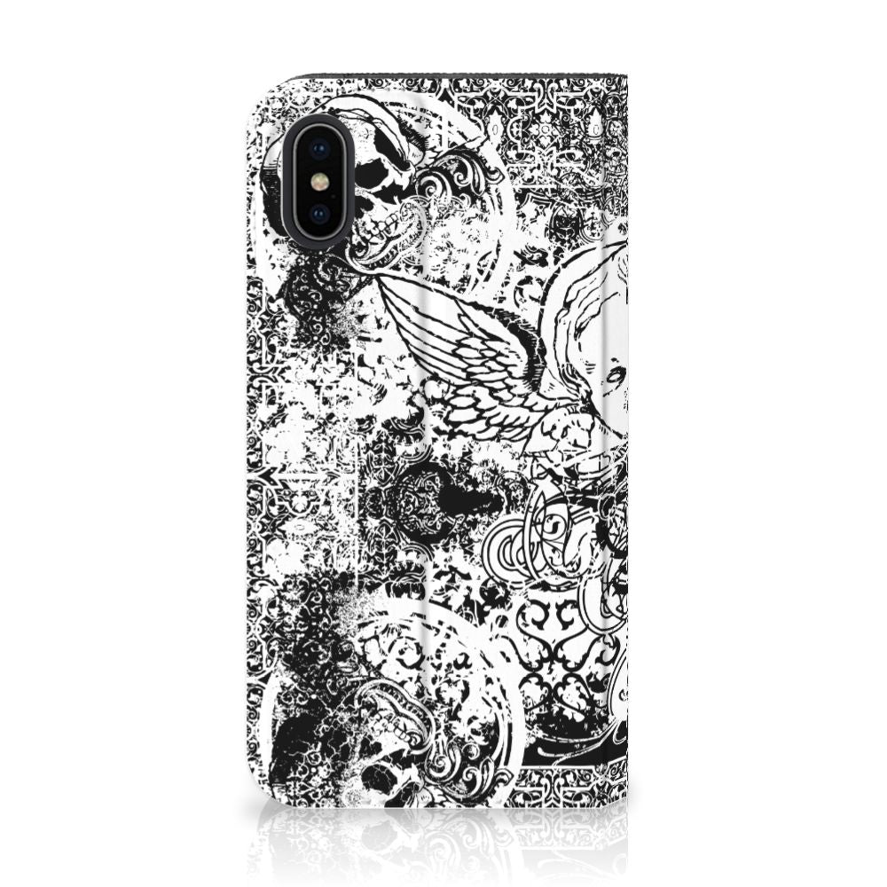 Dit mysterieuze patroon tref je vaak aan op een bandana. Een bandana is een kledingstuk dat om het hoofd of de hals wordt gedragen. Behalve als kledingstuk vindt de bandana soms toepassing als signaal. Een bandana is het eenvoudigste middel als je op de motor of de brommer zit en jezelf wilt beschermen tegen wind, opwaaiend stof of fijn zand. Leden van bekende motorclubs dragen dit kledingstuk dan ook graag, om meerdere redenen. Wil je jouw Apple iPhone X | Xs optimaal beschermen tegen opwaaiend stof, zand of andere bedreigingen, dan is dit design hoesje met Skulls Angel een zeer goede keus. Het design staat op een stand case. Deze case beschermt jouw telefoon aan alle kanten en beschikt over een 1 opbergvakje en een speciale standaard. Het Mobiel BookCase wordt afgesloten met een magneet aan de binnenzijde. De houder aan de binnenzijde is van TPU. Alle zijden van de stand case worden bedrukt.
