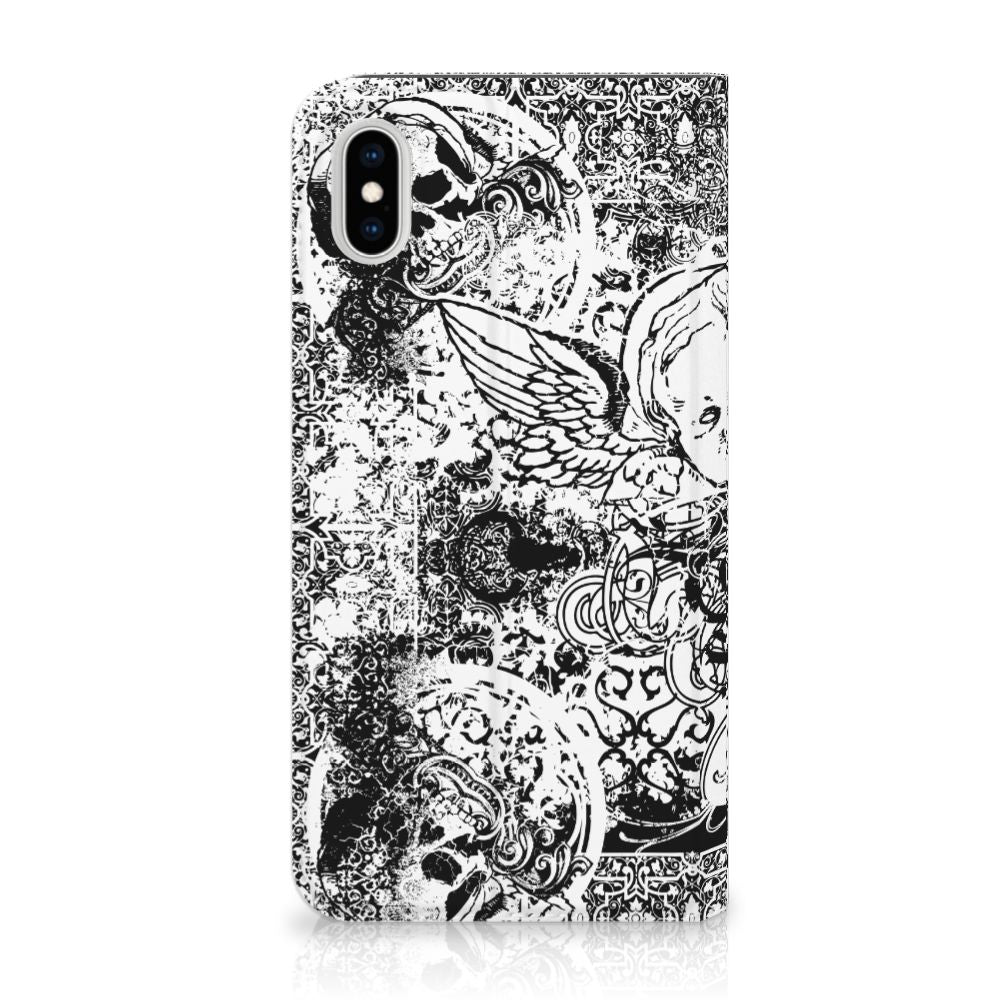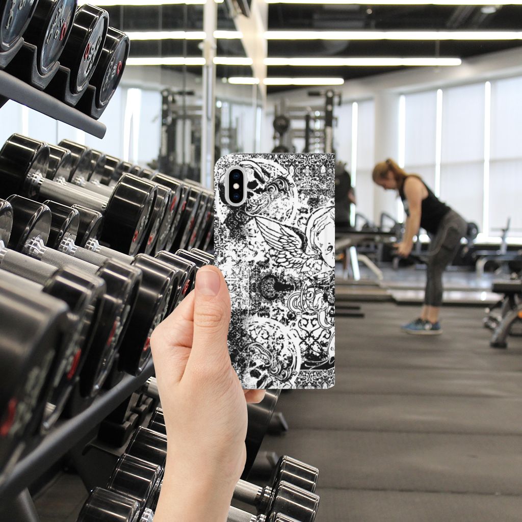 Dit mysterieuze patroon tref je vaak aan op een bandana. Een bandana is een kledingstuk dat om het hoofd of de hals wordt gedragen. Behalve als kledingstuk vindt de bandana soms toepassing als signaal. Een bandana is het eenvoudigste middel als je op de motor of de brommer zit en jezelf wilt beschermen tegen wind, opwaaiend stof of fijn zand. Leden van bekende motorclubs dragen dit kledingstuk dan ook graag, om meerdere redenen. Wil je jouw Apple iPhone Xs Max optimaal beschermen tegen opwaaiend stof, zand of andere bedreigingen, dan is dit design hoesje met Skulls Angel een zeer goede keus. Het design staat op een stand case. Deze case beschermt jouw telefoon aan alle kanten en beschikt over een 1 opbergvakje en een speciale standaard. Het Mobiel BookCase wordt afgesloten met een magneet aan de binnenzijde. De houder aan de binnenzijde is van TPU. Alle zijden van de stand case worden bedrukt.
