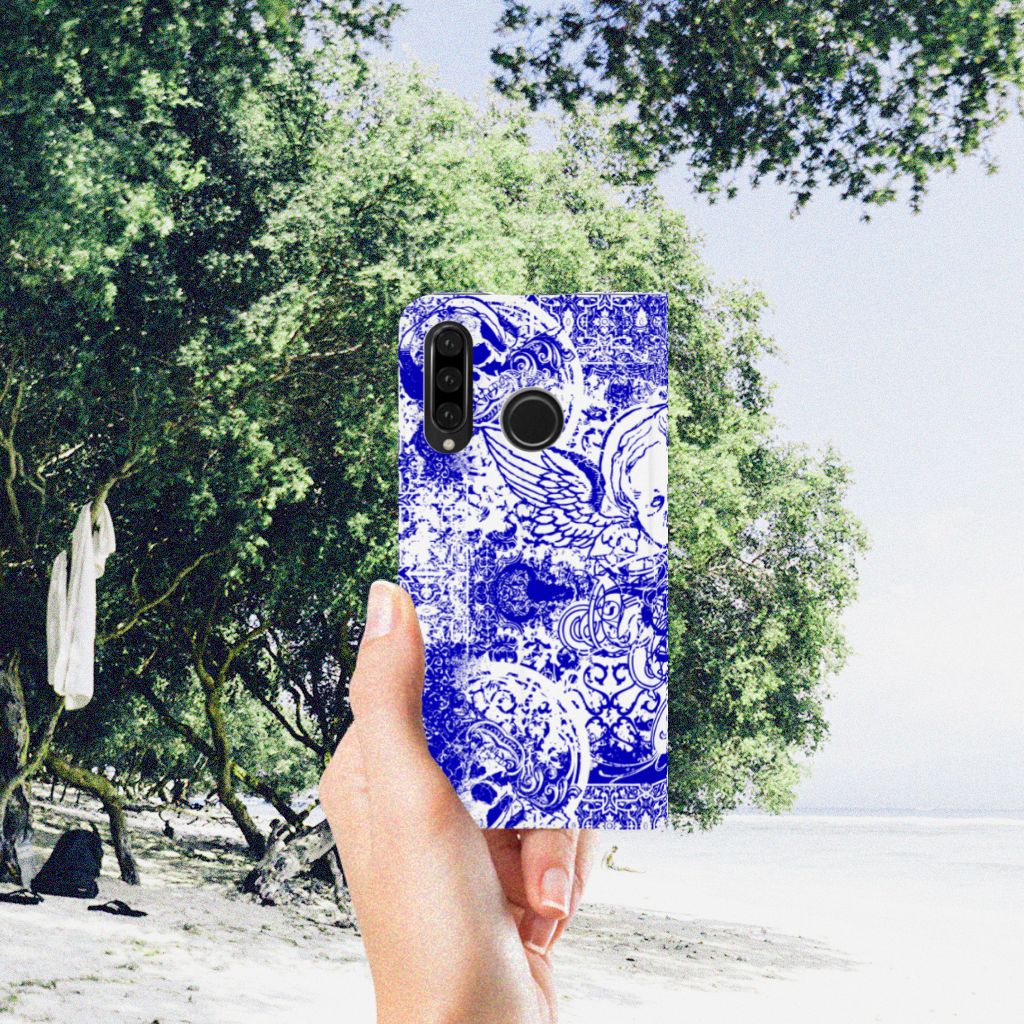 Dit ietwat duistere blauwe patroon tref je vaak aan op een bandana. Een bandana wordt om het hoofd of de hals gedragen. Een bandana is ideaal als je op de racefiets, motor of de brommer zit en jezelf wilt beschermen tegen wind, opwaaiend stof of fijn zand. Leden van motorclubs dragen dit soort bandana’s dan ook graag. Wil je jouw Huawei P30 Lite New Edition optimaal beschermen tegen opwaaiend stof, zand of andere bedreigingen, dan is dit design hoesje met Angel Skull Blue design een zeer goede keus. Het design staat op een stand case. Deze Mobiel BookCase beschermt jouw telefoon aan alle kanten en beschikt over een 1 opbergvakje en een speciale standaard. Het hoesje wordt afgesloten met een magneet aan de binnenzijde. De houder aan de binnenzijde is van TPU. Alle zijden van de standcase worden bedrukt.