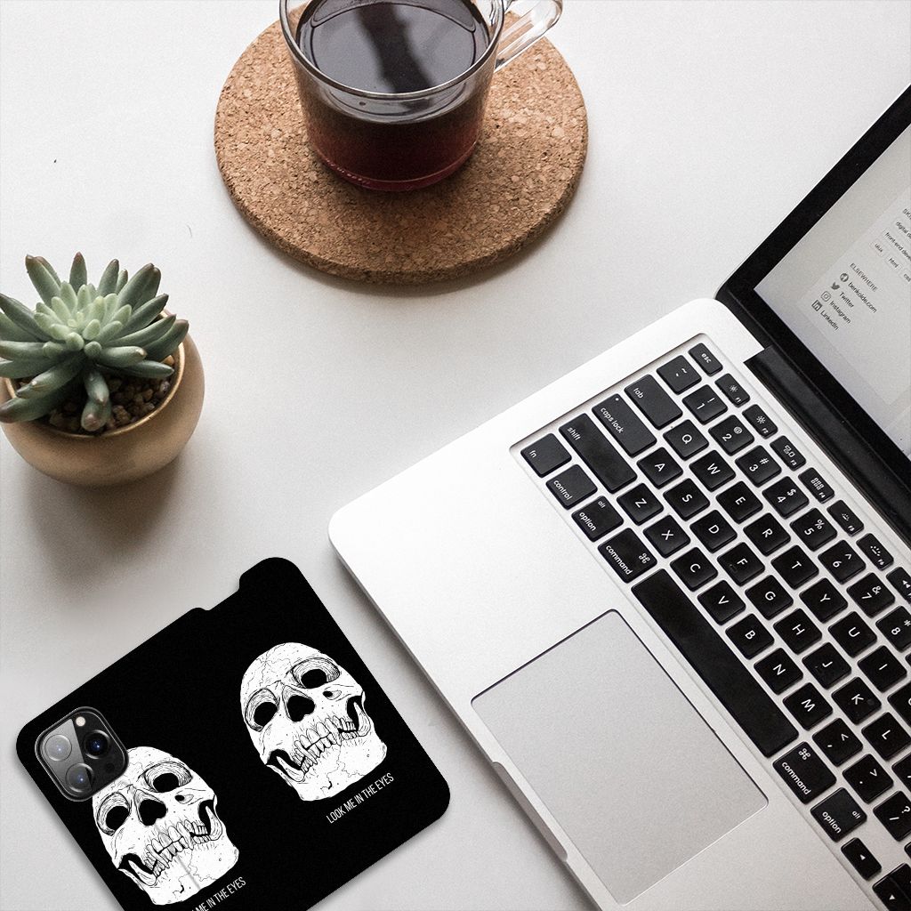 Ben je op zoek naar een uniek telefoonhoesje voor je iPhone 14 Pro? Dan ben je bij B2C Telecom aan het juiste adres! Speciaal voor jou hebben we dit prachtige Skull Eyes design in onze collectie hoesjes opgenomen. Het design wordt bedrukt op een Mobiel BookCase en heeft een vakje aan de binnenkant voor een pasje. Het fijne aan dit hoesje is dat je het als standaard neer kunt zetten. Hierdoor geniet je nog meer als je een filmpje aan het kijken bent op je telefoon. Het hoesje wordt afgesloten door magneten aan de binnenkant. Wil je dit design hoesje nog iets extra's geven? Voeg dan gratis je naam of een quote toe! Is dit design hoesje toch niet helemaal wat je zocht? Ontwerp dan zelf een hoesje in ons ontwerpprogramma.