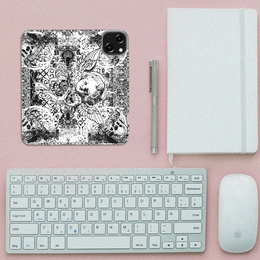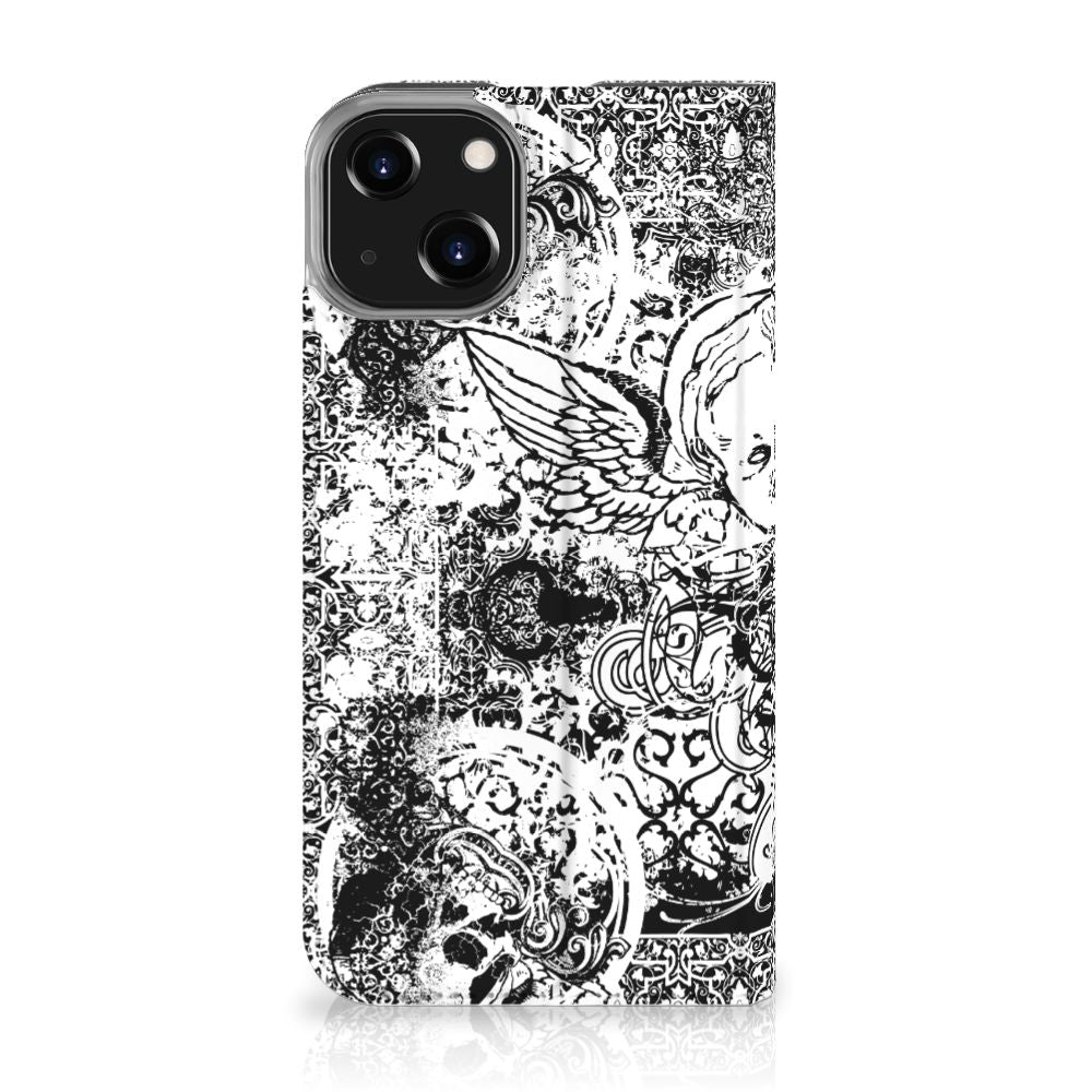 Dit mysterieuze patroon tref je vaak aan op een bandana. Een bandana is een kledingstuk dat om het hoofd of de hals wordt gedragen. Behalve als kledingstuk vindt de bandana soms toepassing als signaal. Een bandana is het eenvoudigste middel als je op de motor of de brommer zit en jezelf wilt beschermen tegen wind, opwaaiend stof of fijn zand. Leden van bekende motorclubs dragen dit kledingstuk dan ook graag, om meerdere redenen. Wil je jouw iPhone 14 optimaal beschermen tegen opwaaiend stof, zand of andere bedreigingen, dan is dit design hoesje met Skulls Angel een zeer goede keus. Het design staat op een stand case. Deze case beschermt jouw telefoon aan alle kanten en beschikt over een 1 opbergvakje en een speciale standaard. Het Mobiel BookCase wordt afgesloten met een magneet aan de binnenzijde. De houder aan de binnenzijde is van TPU. Alle zijden van de stand case worden bedrukt.