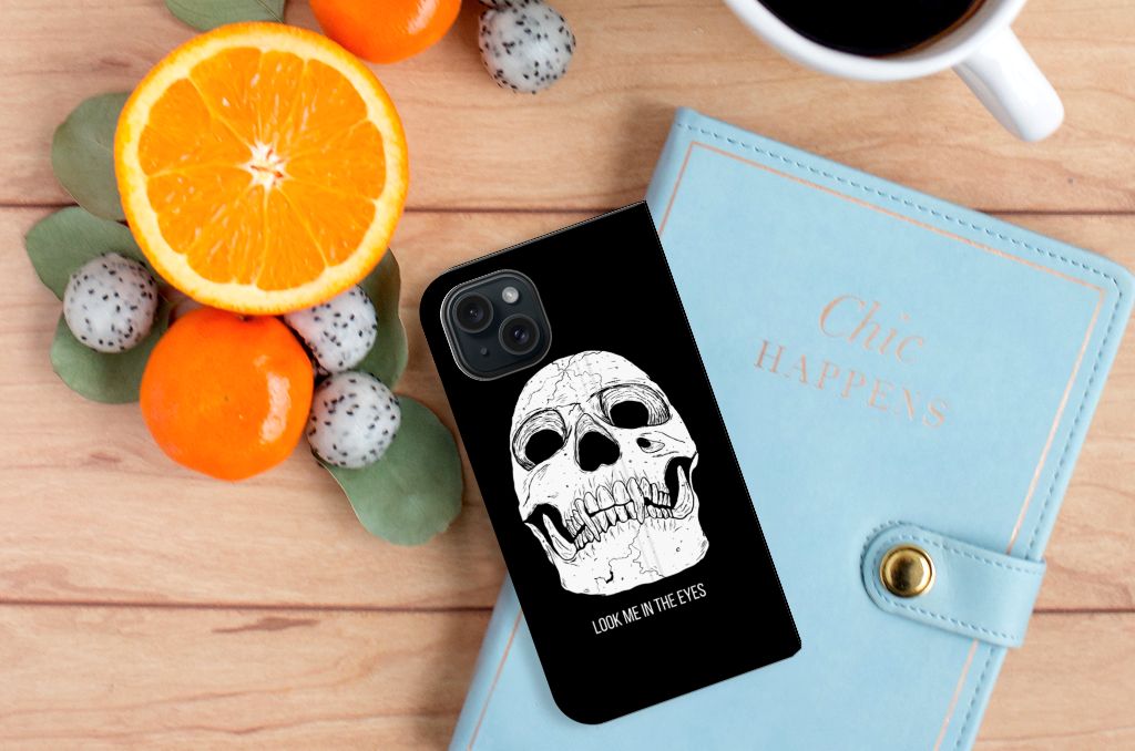 Ben je op zoek naar een uniek telefoonhoesje voor je iPhone 15? Dan ben je bij B2C Telecom aan het juiste adres! Speciaal voor jou hebben we dit prachtige Skull Eyes design in onze collectie hoesjes opgenomen. Het design wordt bedrukt op een Mobiel BookCase en heeft een vakje aan de binnenkant voor een pasje. Het fijne aan dit hoesje is dat je het als standaard neer kunt zetten. Hierdoor geniet je nog meer als je een filmpje aan het kijken bent op je telefoon. Het hoesje wordt afgesloten door magneten aan de binnenkant. Wil je dit design hoesje nog iets extra's geven? Voeg dan gratis je naam of een quote toe! Is dit design hoesje toch niet helemaal wat je zocht? Ontwerp dan zelf een hoesje in ons ontwerpprogramma.