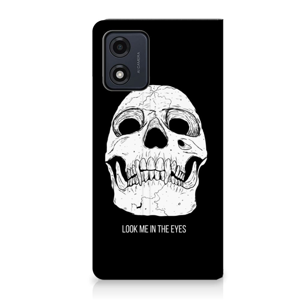 Ben je op zoek naar een uniek telefoonhoesje voor je Motorola Moto E13 4G? Dan ben je bij B2C Telecom aan het juiste adres! Speciaal voor jou hebben we dit prachtige Skull Eyes design in onze collectie hoesjes opgenomen. Het design wordt bedrukt op een Mobiel BookCase en heeft een vakje aan de binnenkant voor een pasje. Het fijne aan dit hoesje is dat je het als standaard neer kunt zetten. Hierdoor geniet je nog meer als je een filmpje aan het kijken bent op je telefoon. Het hoesje wordt afgesloten door magneten aan de binnenkant. Wil je dit design hoesje nog iets extra's geven? Voeg dan gratis je naam of een quote toe! Is dit design hoesje toch niet helemaal wat je zocht? Ontwerp dan zelf een hoesje in ons ontwerpprogramma.