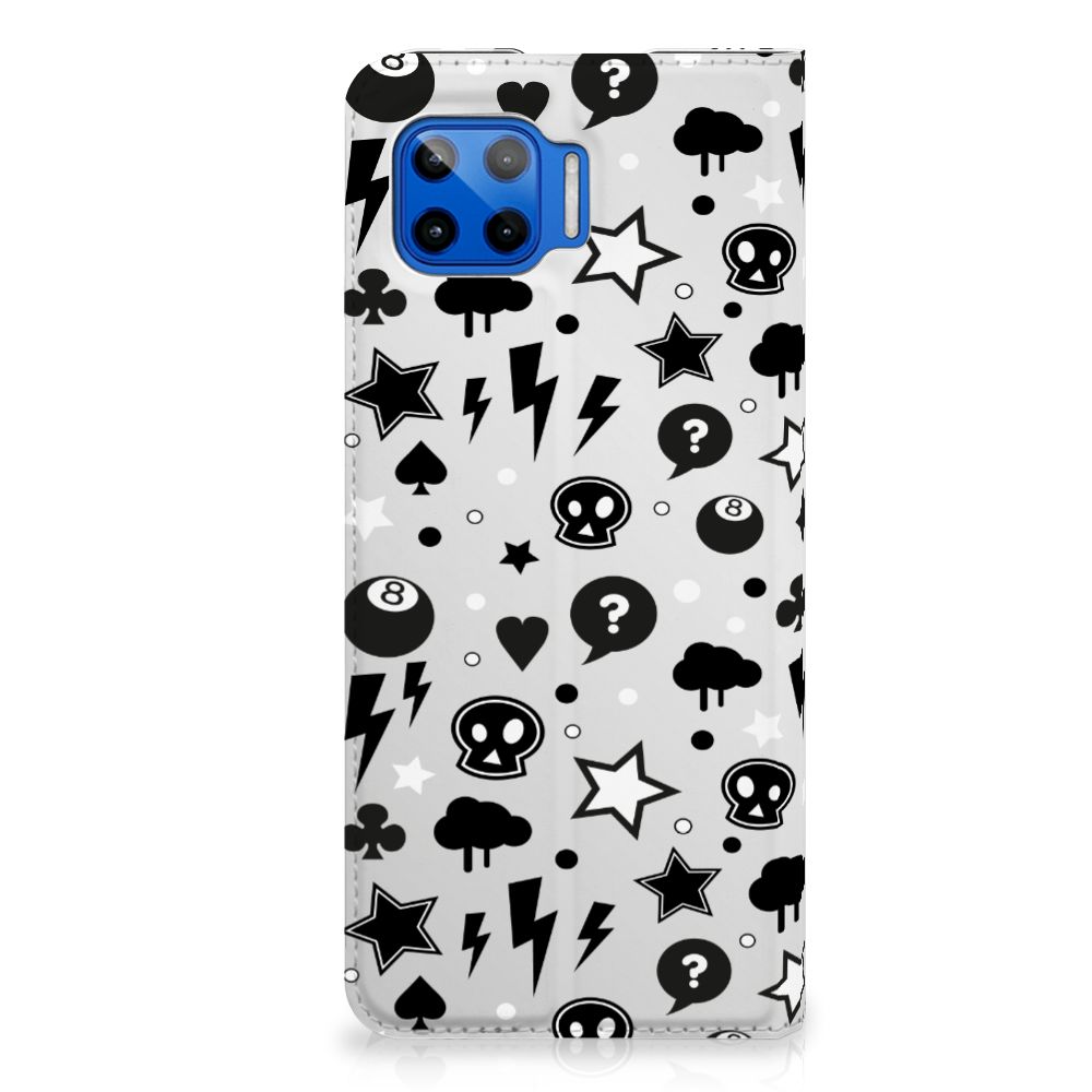 Bliksemflitsen, donderwolken, sterren en biljartballen vliegen op je af als je deze Motorola Moto G 5G Plus Mobiel BookCase koopt. Het bijzondere Silver Punk design is van onze eigen ontwerper en vind je in geen enkel andere winkel of webshop. Ben je fan van dit soort stoere en opvallende hoesjes, dan kun je je geluk niet op als je ons assortiment smartphone accessoires bekijkt. Dit zeer populaire smartphone hoesje heeft 1 vakje en is aan alle zijden bedrukt met bliksemflitsen, donderwolken, sterren en biljartballen. Verder heeft de case een standaard en een magneet aan de binnenkant. De houder is van TPU, de buitenzijde van PU-leer. Zelfs doodshoofdjes zie je voorbijkomen in het design. Om maar aan te geven dat je met dit zilveren hoesje een krachtige smartphone accessoire te pakken hebt.