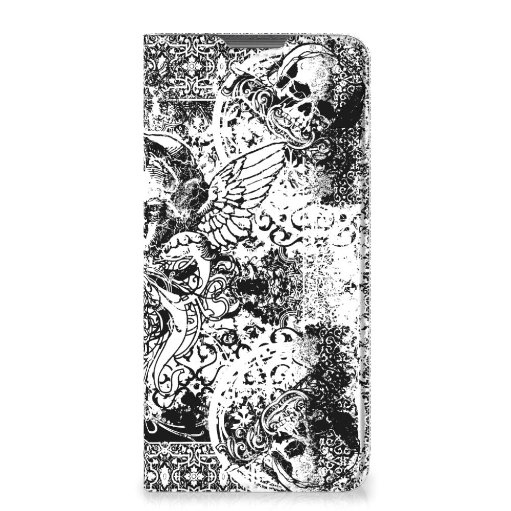 Dit mysterieuze patroon tref je vaak aan op een bandana. Een bandana is een kledingstuk dat om het hoofd of de hals wordt gedragen. Behalve als kledingstuk vindt de bandana soms toepassing als signaal. Een bandana is het eenvoudigste middel als je op de motor of de brommer zit en jezelf wilt beschermen tegen wind, opwaaiend stof of fijn zand. Leden van bekende motorclubs dragen dit kledingstuk dan ook graag, om meerdere redenen. Wil je jouw Motorola Moto G52 | Moto G82 optimaal beschermen tegen opwaaiend stof, zand of andere bedreigingen, dan is dit design hoesje met Skulls Angel een zeer goede keus. Het design staat op een stand case. Deze case beschermt jouw telefoon aan alle kanten en beschikt over een 1 opbergvakje en een speciale standaard. Het Mobiel BookCase wordt afgesloten met een magneet aan de binnenzijde. De houder aan de binnenzijde is van TPU. Alle zijden van de stand case worden bedrukt.