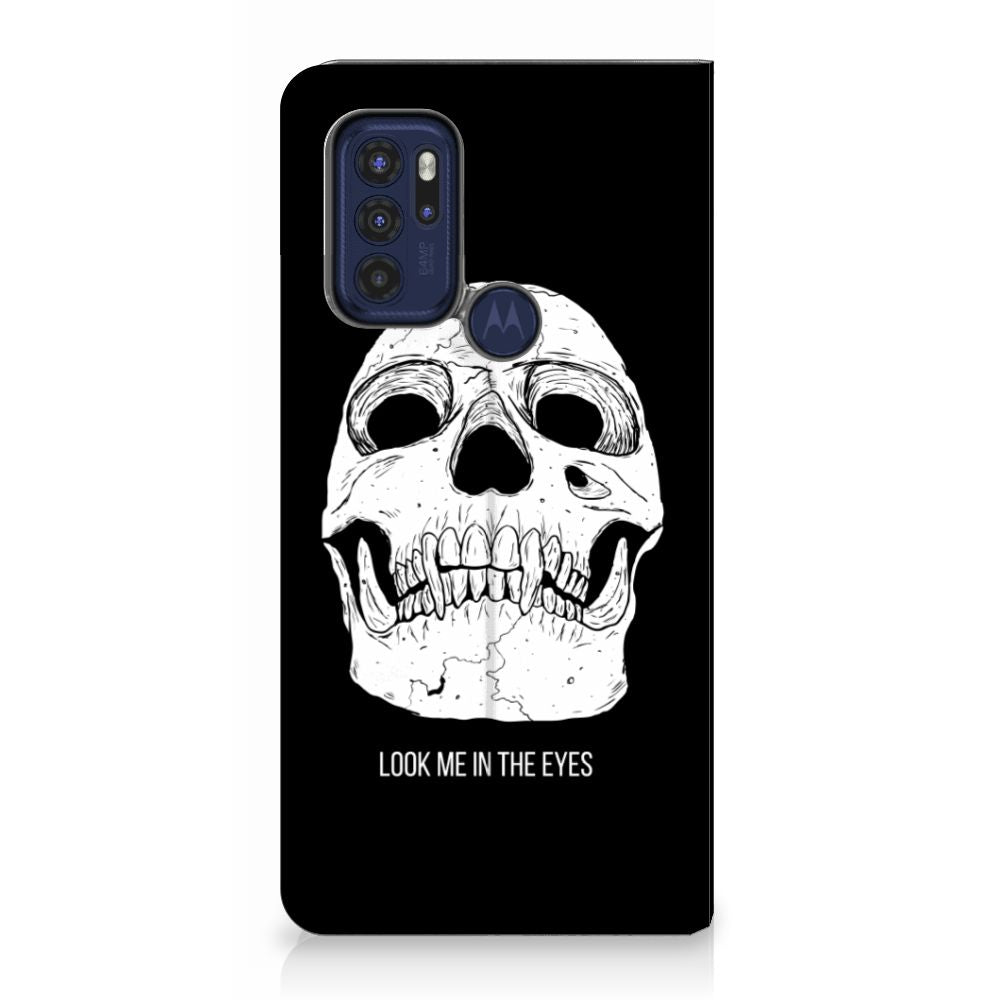 Ben je op zoek naar een uniek telefoonhoesje voor je Motorola Moto G60s? Dan ben je bij B2C Telecom aan het juiste adres! Speciaal voor jou hebben we dit prachtige Skull Eyes design in onze collectie hoesjes opgenomen. Het design wordt bedrukt op een Mobiel BookCase en heeft een vakje aan de binnenkant voor een pasje. Het fijne aan dit hoesje is dat je het als standaard neer kunt zetten. Hierdoor geniet je nog meer als je een filmpje aan het kijken bent op je telefoon. Het hoesje wordt afgesloten door magneten aan de binnenkant. Wil je dit design hoesje nog iets extra's geven? Voeg dan gratis je naam of een quote toe! Is dit design hoesje toch niet helemaal wat je zocht? Ontwerp dan zelf een hoesje in ons ontwerpprogramma.
