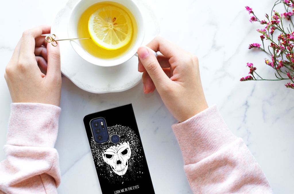 Ben je op zoek naar een uniek telefoonhoesje voor je Motorola Moto G60s? Dan ben je bij B2C Telecom aan het juiste adres! Speciaal voor jou hebben we dit prachtige Skull Hair design in onze collectie hoesjes opgenomen. Het design wordt bedrukt op een Mobiel BookCase en heeft een vakje aan de binnenkant voor een pasje. Het fijne aan dit hoesje is dat je het als standaard neer kunt zetten. Hierdoor geniet je nog meer als je een filmpje aan het kijken bent op je telefoon. Het hoesje wordt afgesloten door magneten aan de binnenkant. Wil je dit design hoesje nog iets extra's geven? Voeg dan gratis je naam of een quote toe! Is dit design hoesje toch niet helemaal wat je zocht? Ontwerp dan zelf een hoesje in ons ontwerpprogramma.