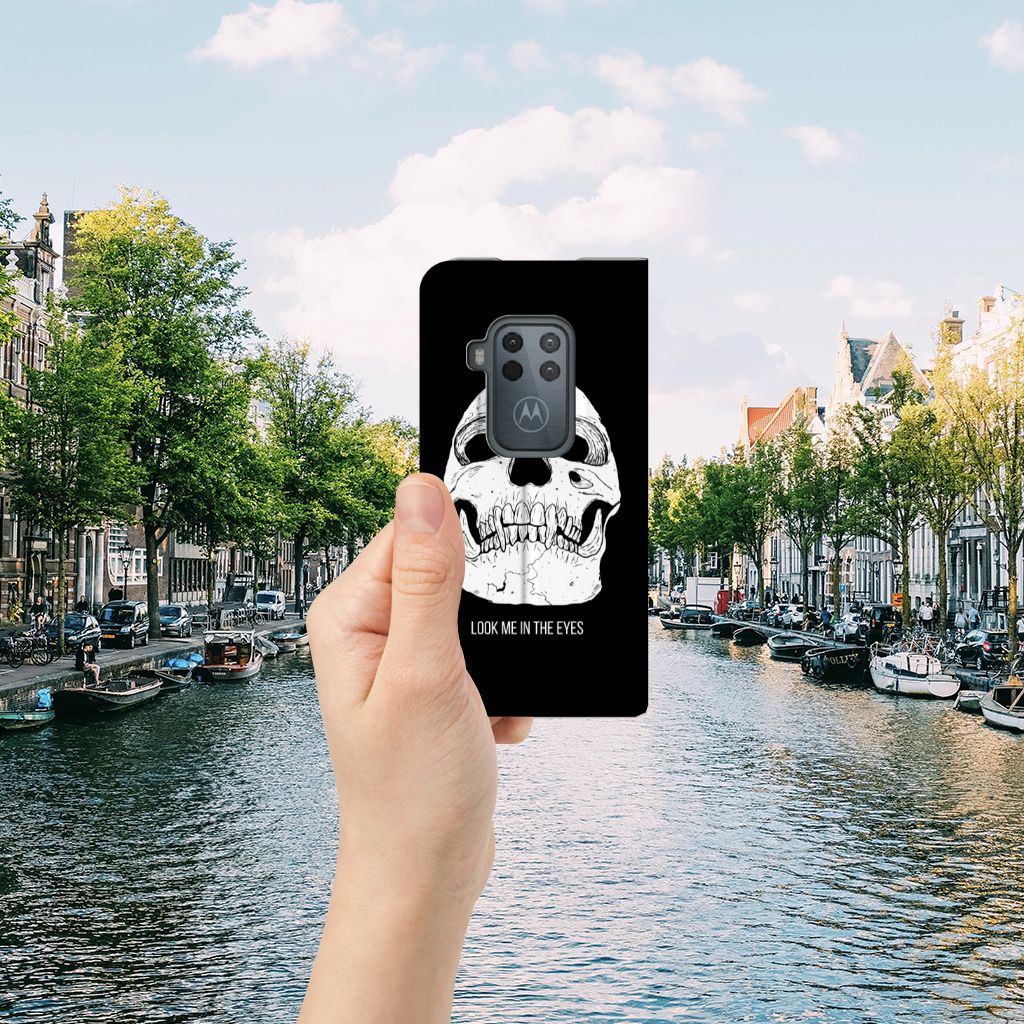 Ben je op zoek naar een uniek telefoonhoesje voor je Motorola One Zoom? Dan ben je bij B2C Telecom aan het juiste adres! Speciaal voor jou hebben we dit prachtige Skull Eyes design in onze collectie hoesjes opgenomen. Het design wordt bedrukt op een Mobiel BookCase en heeft een vakje aan de binnenkant voor een pasje. Het fijne aan dit hoesje is dat je het als standaard neer kunt zetten. Hierdoor geniet je nog meer als je een filmpje aan het kijken bent op je telefoon. Het hoesje wordt afgesloten door magneten aan de binnenkant. Wil je dit design hoesje nog iets extra's geven? Voeg dan gratis je naam of een quote toe! Is dit design hoesje toch niet helemaal wat je zocht? Ontwerp dan zelf een hoesje in ons ontwerpprogramma.