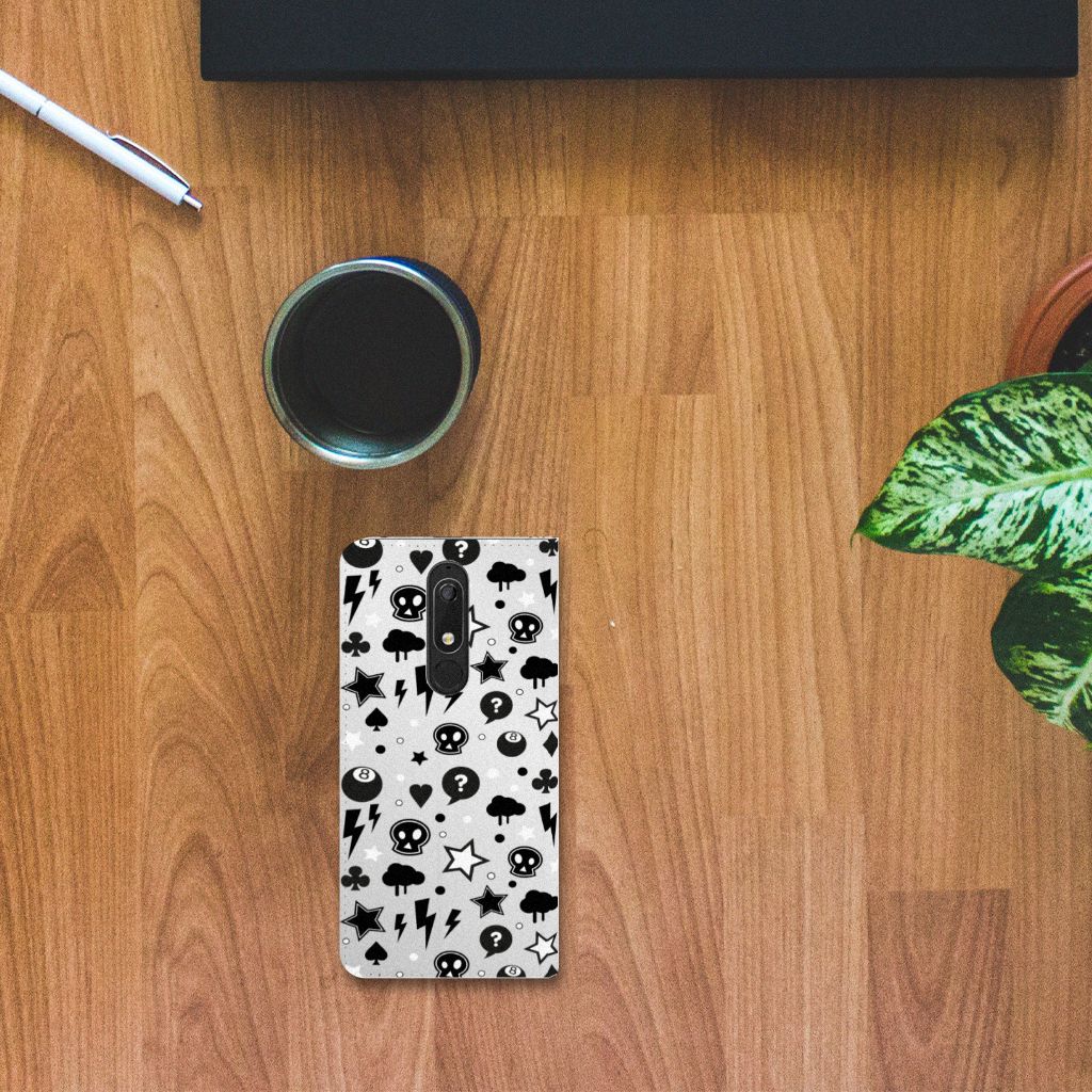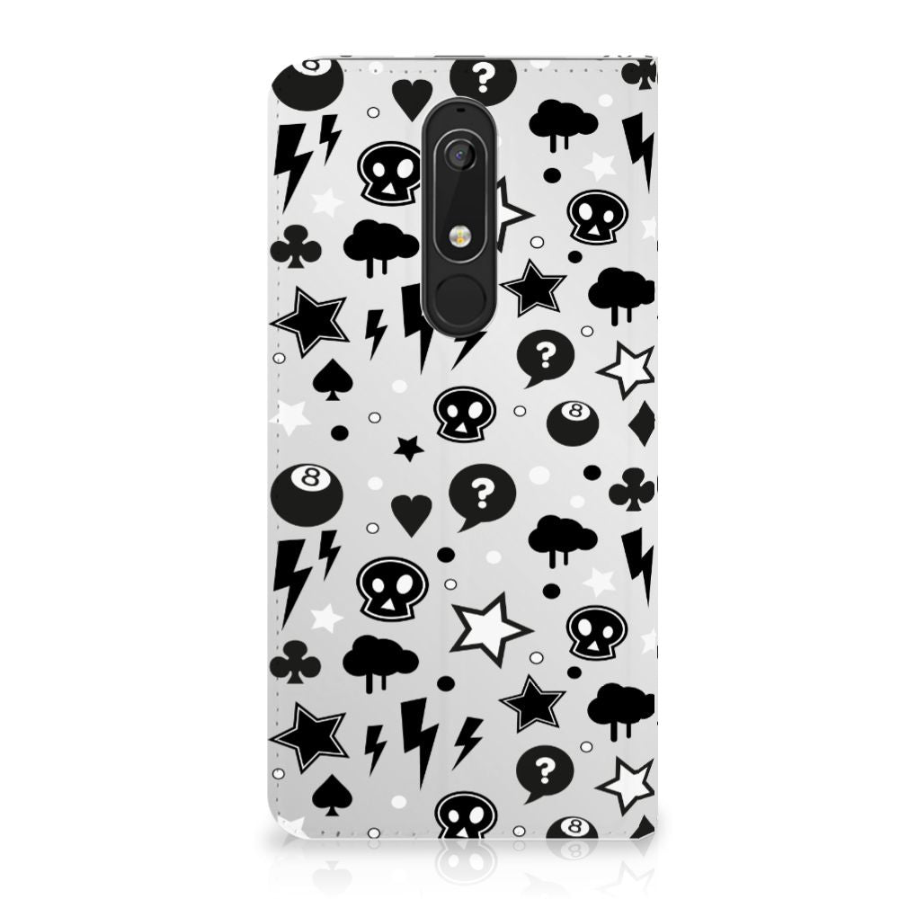 Bliksemflitsen, donderwolken, sterren en biljartballen vliegen op je af als je deze Nokia 5.1 (2018) Mobiel BookCase koopt. Het bijzondere Silver Punk design is van onze eigen ontwerper en vind je in geen enkel andere winkel of webshop. Ben je fan van dit soort stoere en opvallende hoesjes, dan kun je je geluk niet op als je ons assortiment smartphone accessoires bekijkt. Dit zeer populaire smartphone hoesje heeft 1 vakje en is aan alle zijden bedrukt met bliksemflitsen, donderwolken, sterren en biljartballen. Verder heeft de case een standaard en een magneet aan de binnenkant. De houder is van TPU, de buitenzijde van PU-leer. Zelfs doodshoofdjes zie je voorbijkomen in het design. Om maar aan te geven dat je met dit zilveren hoesje een krachtige smartphone accessoire te pakken hebt.