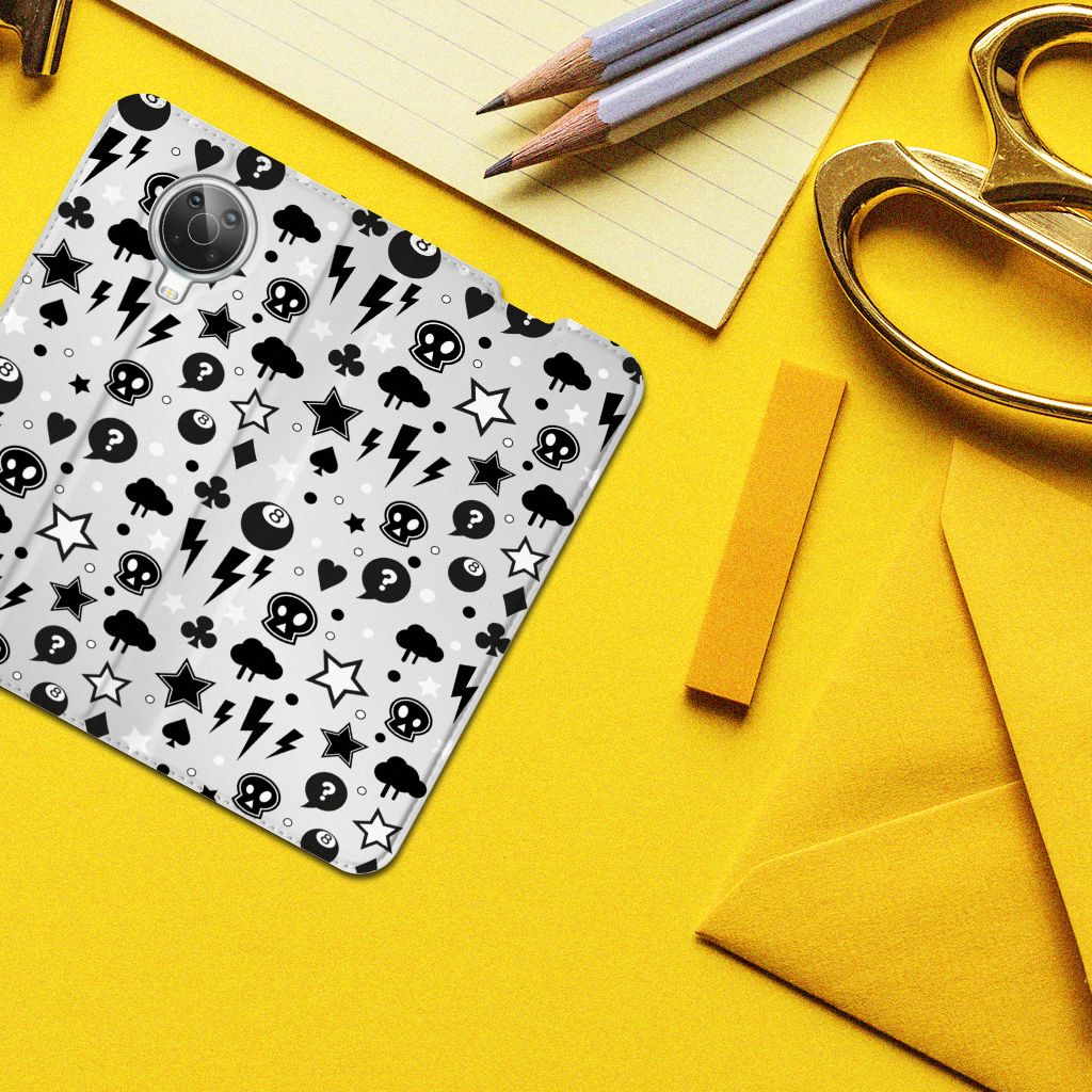 Bliksemflitsen, donderwolken, sterren en biljartballen vliegen op je af als je deze Nokia G10 | G20 Mobiel BookCase koopt. Het bijzondere Silver Punk design is van onze eigen ontwerper en vind je in geen enkel andere winkel of webshop. Ben je fan van dit soort stoere en opvallende hoesjes, dan kun je je geluk niet op als je ons assortiment smartphone accessoires bekijkt. Dit zeer populaire smartphone hoesje heeft 1 vakje en is aan alle zijden bedrukt met bliksemflitsen, donderwolken, sterren en biljartballen. Verder heeft de case een standaard en een magneet aan de binnenkant. De houder is van TPU, de buitenzijde van PU-leer. Zelfs doodshoofdjes zie je voorbijkomen in het design. Om maar aan te geven dat je met dit zilveren hoesje een krachtige smartphone accessoire te pakken hebt.