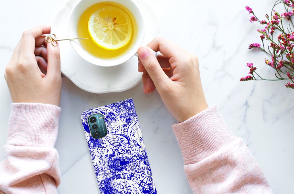 Dit ietwat duistere blauwe patroon tref je vaak aan op een bandana. Een bandana wordt om het hoofd of de hals gedragen. Een bandana is ideaal als je op de racefiets, motor of de brommer zit en jezelf wilt beschermen tegen wind, opwaaiend stof of fijn zand. Leden van motorclubs dragen dit soort bandana’s dan ook graag. Wil je jouw Nokia G11 | G21 optimaal beschermen tegen opwaaiend stof, zand of andere bedreigingen, dan is dit design hoesje met Angel Skull Blue design een zeer goede keus. Het design staat op een stand case. Deze Mobiel BookCase beschermt jouw telefoon aan alle kanten en beschikt over een 1 opbergvakje en een speciale standaard. Het hoesje wordt afgesloten met een magneet aan de binnenzijde. De houder aan de binnenzijde is van TPU. Alle zijden van de standcase worden bedrukt.