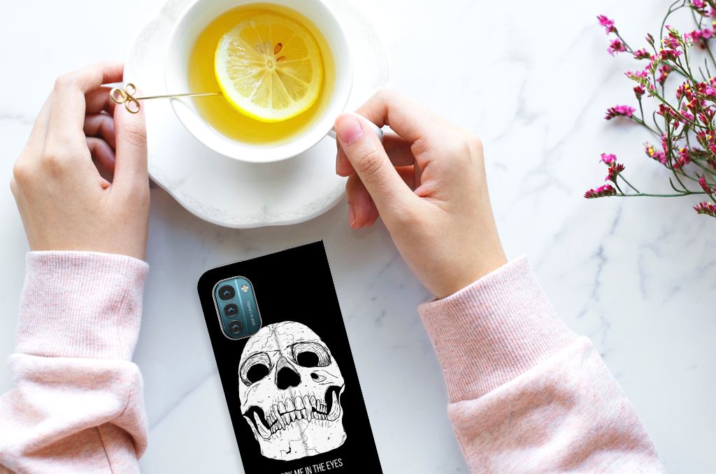 Ben je op zoek naar een uniek telefoonhoesje voor je Nokia G11 | G21? Dan ben je bij B2C Telecom aan het juiste adres! Speciaal voor jou hebben we dit prachtige Skull Eyes design in onze collectie hoesjes opgenomen. Het design wordt bedrukt op een Mobiel BookCase en heeft een vakje aan de binnenkant voor een pasje. Het fijne aan dit hoesje is dat je het als standaard neer kunt zetten. Hierdoor geniet je nog meer als je een filmpje aan het kijken bent op je telefoon. Het hoesje wordt afgesloten door magneten aan de binnenkant. Wil je dit design hoesje nog iets extra's geven? Voeg dan gratis je naam of een quote toe! Is dit design hoesje toch niet helemaal wat je zocht? Ontwerp dan zelf een hoesje in ons ontwerpprogramma.