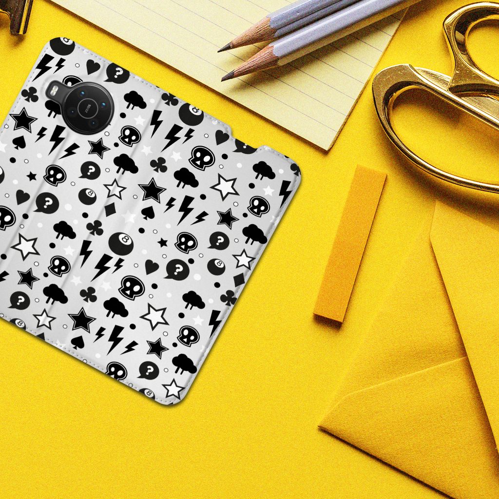 Bliksemflitsen, donderwolken, sterren en biljartballen vliegen op je af als je deze Nokia X20 | X10 Mobiel BookCase koopt. Het bijzondere Silver Punk design is van onze eigen ontwerper en vind je in geen enkel andere winkel of webshop. Ben je fan van dit soort stoere en opvallende hoesjes, dan kun je je geluk niet op als je ons assortiment smartphone accessoires bekijkt. Dit zeer populaire smartphone hoesje heeft 1 vakje en is aan alle zijden bedrukt met bliksemflitsen, donderwolken, sterren en biljartballen. Verder heeft de case een standaard en een magneet aan de binnenkant. De houder is van TPU, de buitenzijde van PU-leer. Zelfs doodshoofdjes zie je voorbijkomen in het design. Om maar aan te geven dat je met dit zilveren hoesje een krachtige smartphone accessoire te pakken hebt.