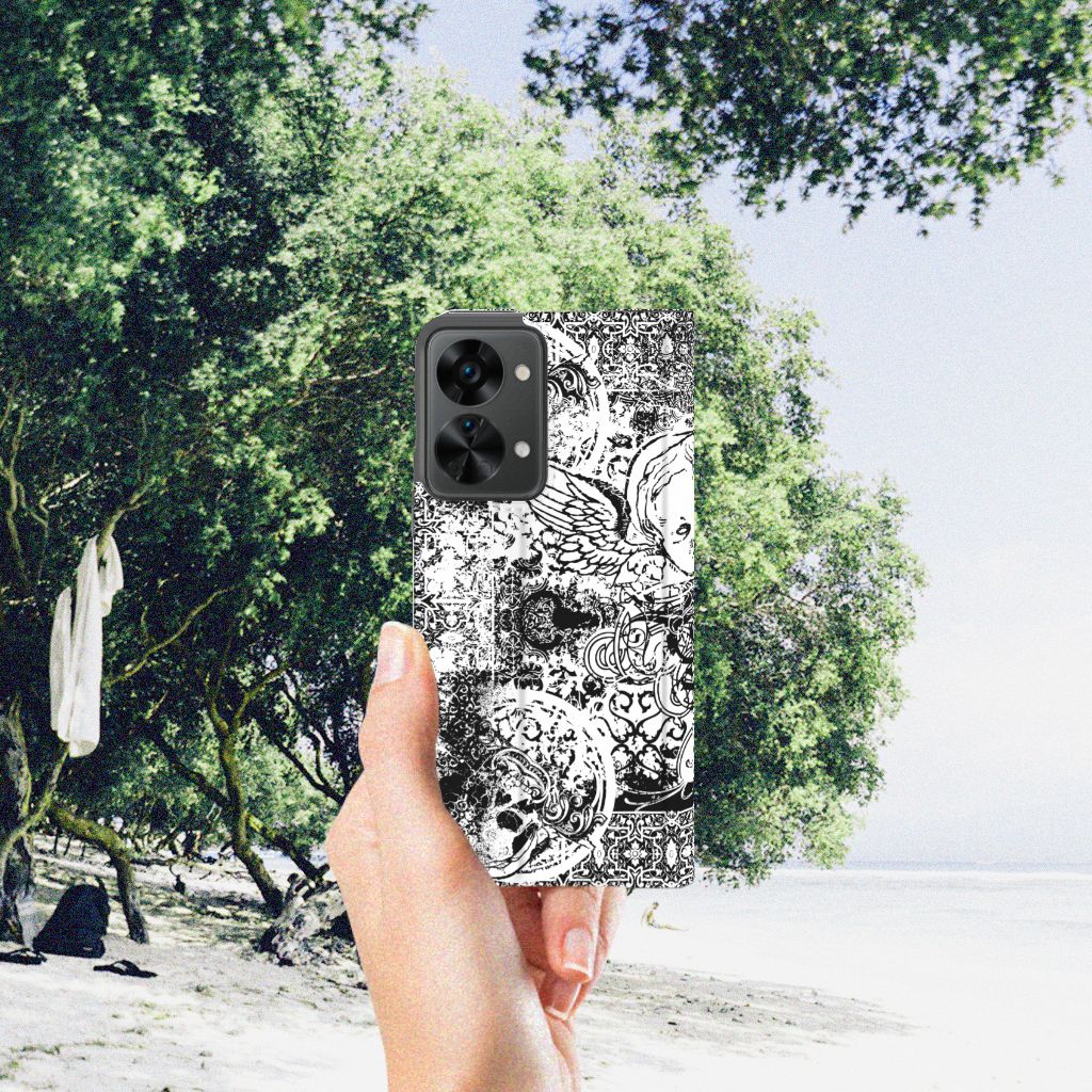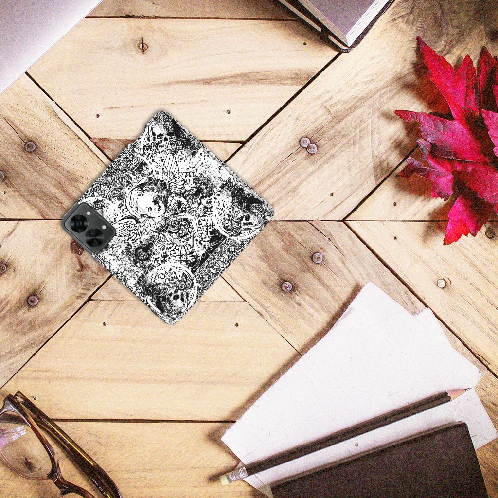 Dit mysterieuze patroon tref je vaak aan op een bandana. Een bandana is een kledingstuk dat om het hoofd of de hals wordt gedragen. Behalve als kledingstuk vindt de bandana soms toepassing als signaal. Een bandana is het eenvoudigste middel als je op de motor of de brommer zit en jezelf wilt beschermen tegen wind, opwaaiend stof of fijn zand. Leden van bekende motorclubs dragen dit kledingstuk dan ook graag, om meerdere redenen. Wil je jouw OnePlus Nord 2T optimaal beschermen tegen opwaaiend stof, zand of andere bedreigingen, dan is dit design hoesje met Skulls Angel een zeer goede keus. Het design staat op een stand case. Deze case beschermt jouw telefoon aan alle kanten en beschikt over een 1 opbergvakje en een speciale standaard. Het Mobiel BookCase wordt afgesloten met een magneet aan de binnenzijde. De houder aan de binnenzijde is van TPU. Alle zijden van de stand case worden bedrukt.